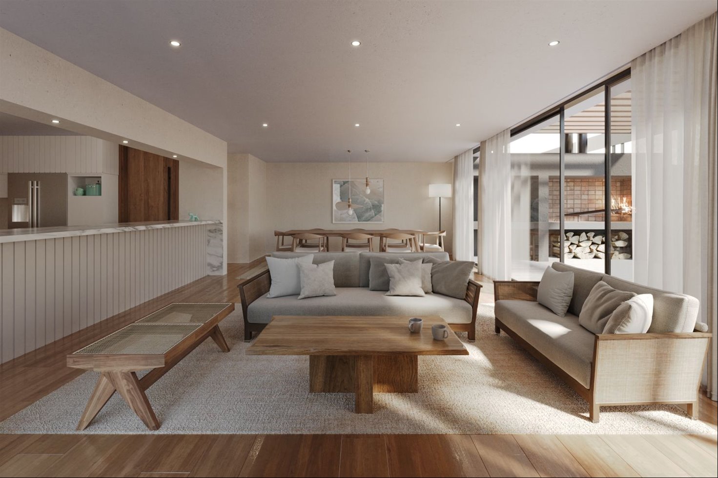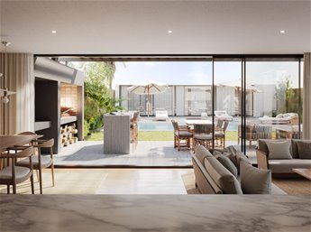 En planta baja, dispone de tres ambientes: estar, escritorio (o quinto dormitorio) y un amplio living comedor con cocina integrada.