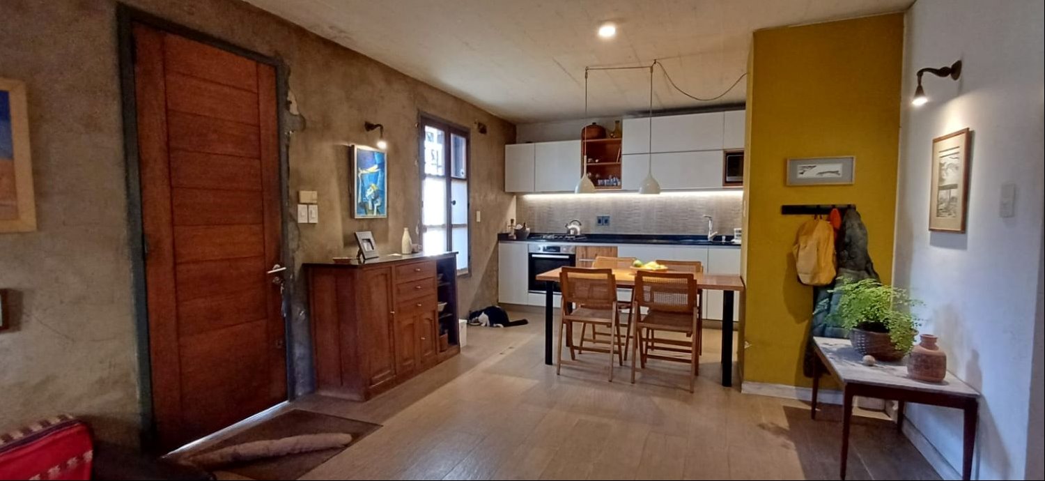 La casa está orientada al oeste, lo que garantiza luz natural durante gran parte del día. Su disposición al frente permite disfrutar de una buena conexión con el entorno. La distribución interior de la vivienda es funcional, en la planta baja se encuentra la cocina comedor integrada , perfecta para compartir lindos momentos y conecta con el área de living , entre sus comodidades, destaca la presencia de una estufa a leña, que aporta calidez y un ambiente acogedor, especialmente en los meses más fríos. 1 baño completo reciclado Escaleras que llevan al primer piso en el cual hay dos dormitorios , el principal con placares amplios . Ambos con vistas al exterior . Tercer dormitorio pequeño en el segundo piso , con un baño en suitte ( el cual hoy se utiliza como lavadero ), y desde este dormitorio se accede a la azotea la cual se utiliza como espacio de recreación No tiene gastos comunes , paga $ 12.500 de contribución anual y no tiene gge .
