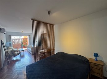 Monoambiente equipado muy amplio dividido con cocina definida y un patio hermoso y terraza lavadero a 100 metros del mar.