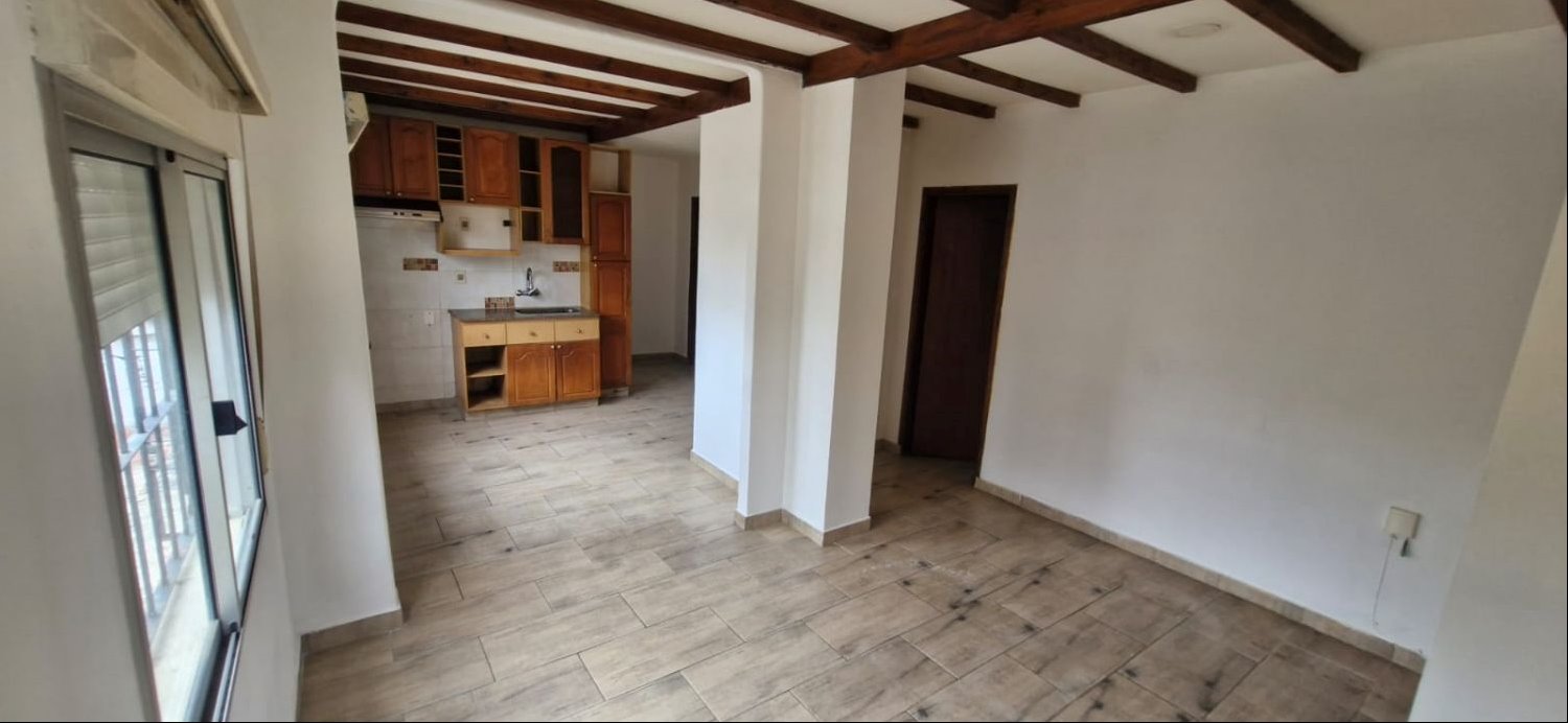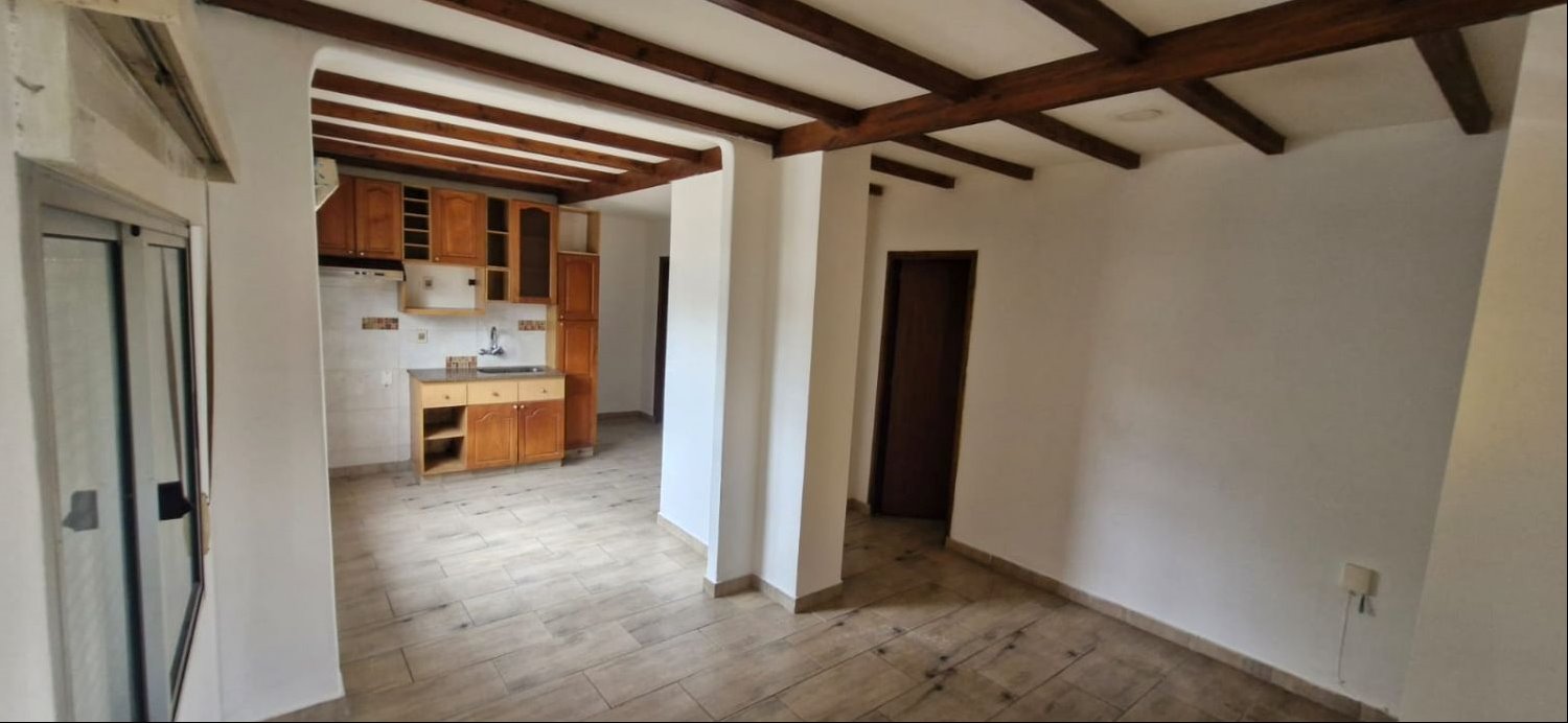 Living-comedor con coicna integrada, 2 dormitorios, baño y patio con parrillero.