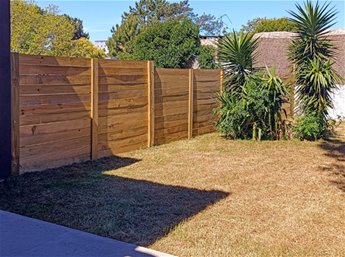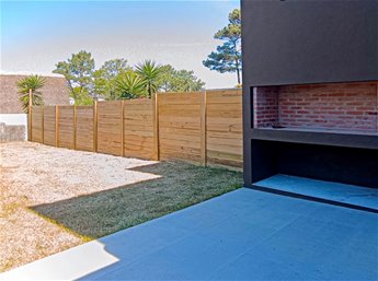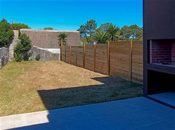 Hermosos fondo con parrillero y muros perimetrales y espacio para instalar piscina y barbacoa.