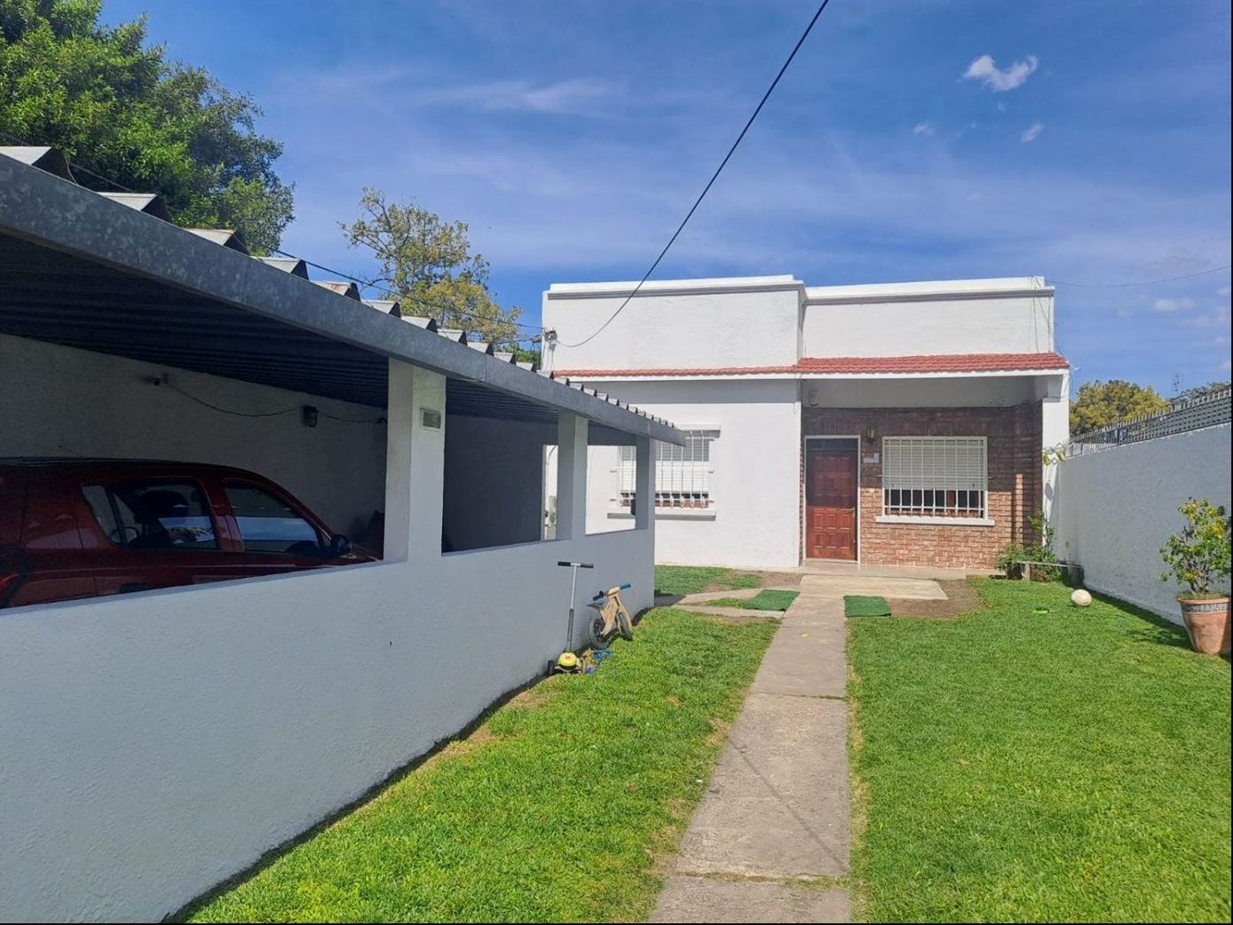 Dos patios para disfrutar •Patio delantero de aprox. 200 m² con césped natural •Cochera para 3 autos •Patio al fondo con parrillero techado + galpón/lavadero