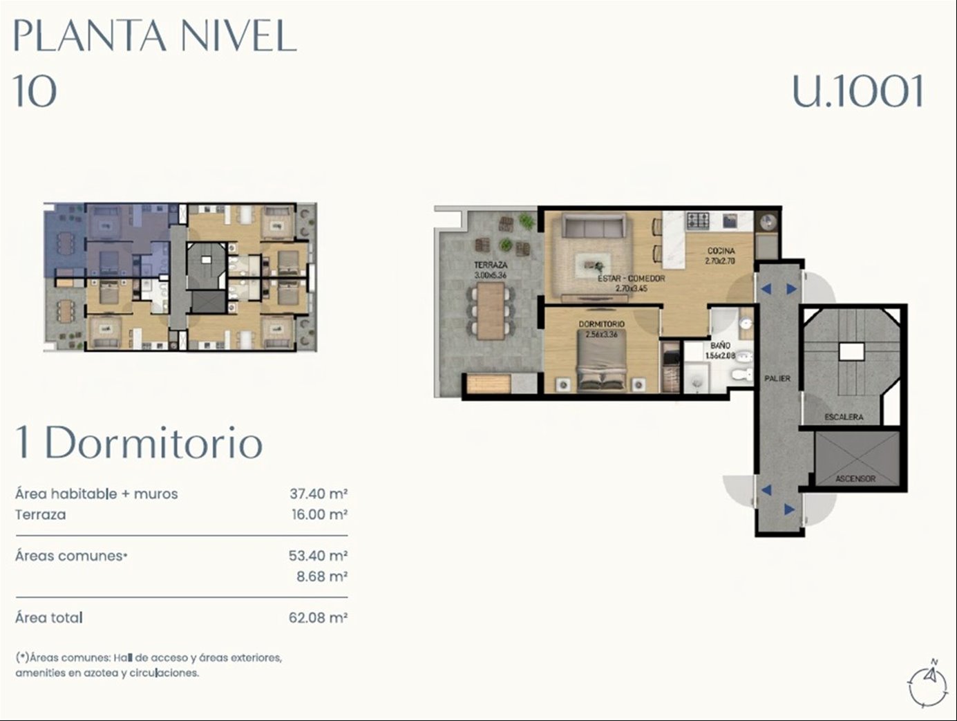 LIVING COMEDOR Pavimento SPC de primera calidad Aberturas exteriores de aluminio Previsión para equipo de aire acondicionado Split frío-calor