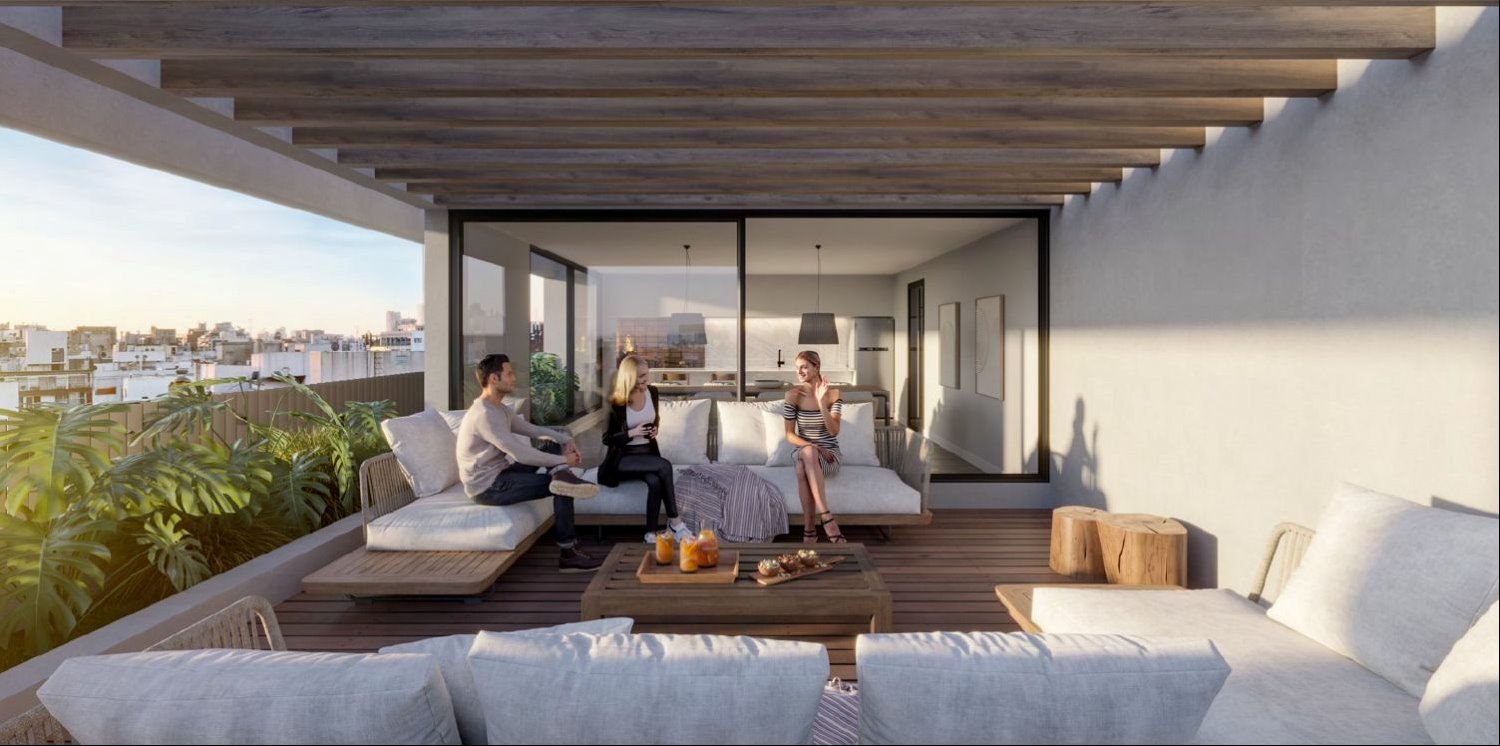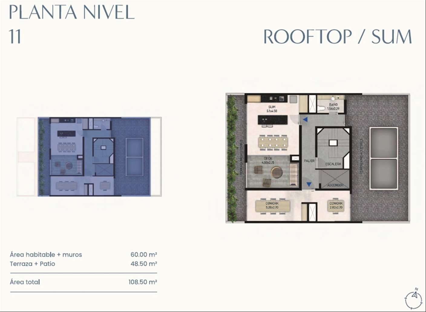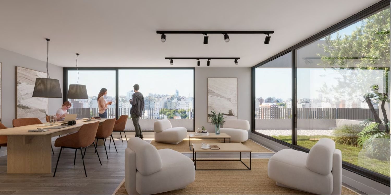 Rooftop con vistas panorámicas y jardín urbano Barbacoa / Coworking Space Espacio para Wellness y Mindfulness Bike parking Laundry