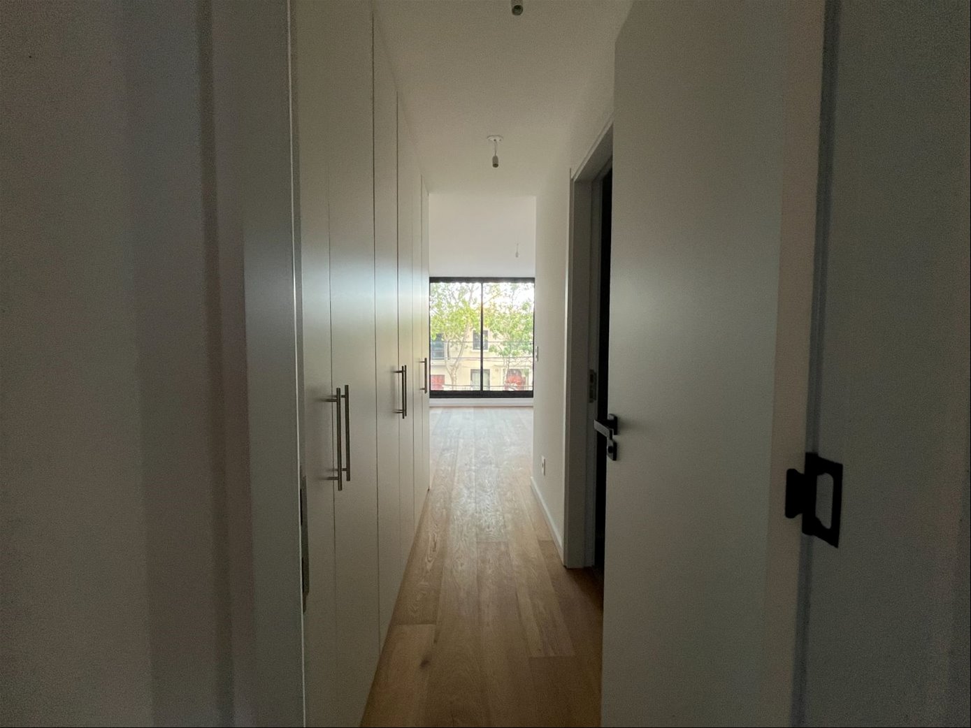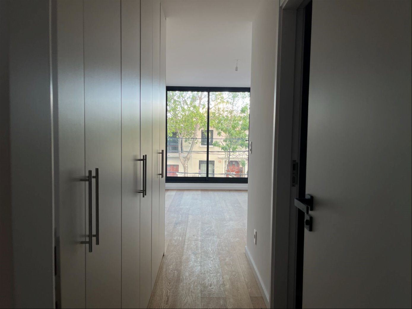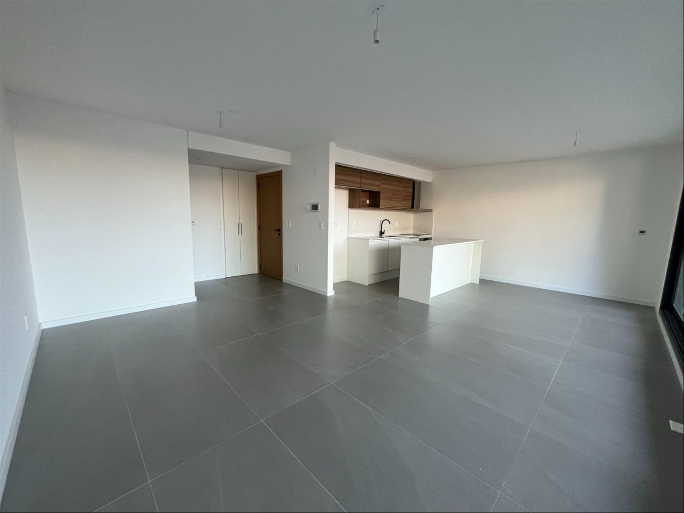 El apartamento se desarrolla en: amplio living comedor con gran ventanal.