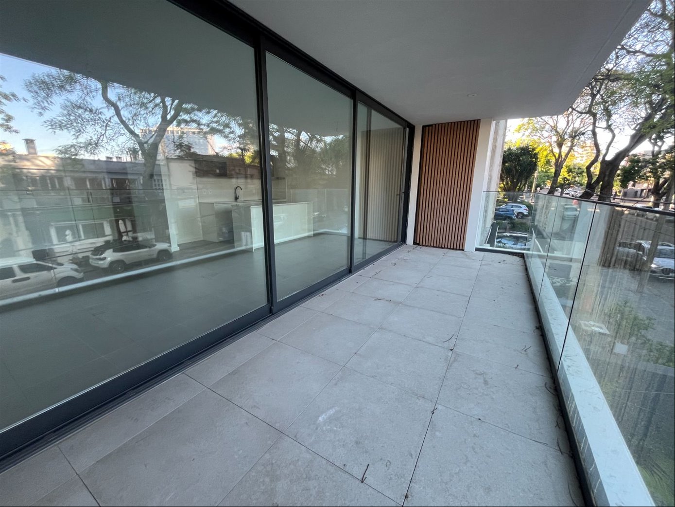 Grandes ventanales en el living de DVH con salida a terraza balcon al frente, con nicho para lavarropa.