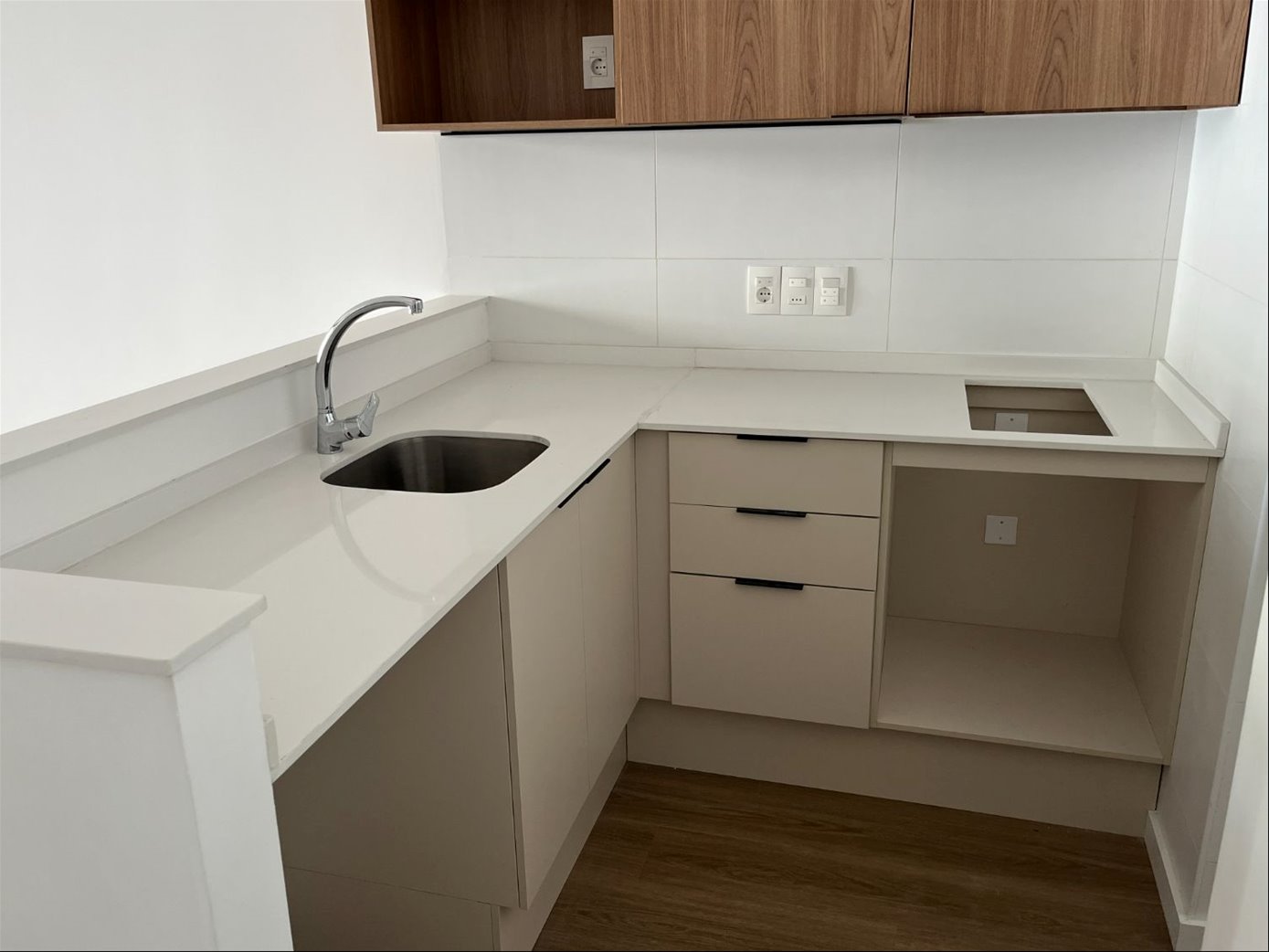 - Cocina integrada con placares sobre y bajo mesada.