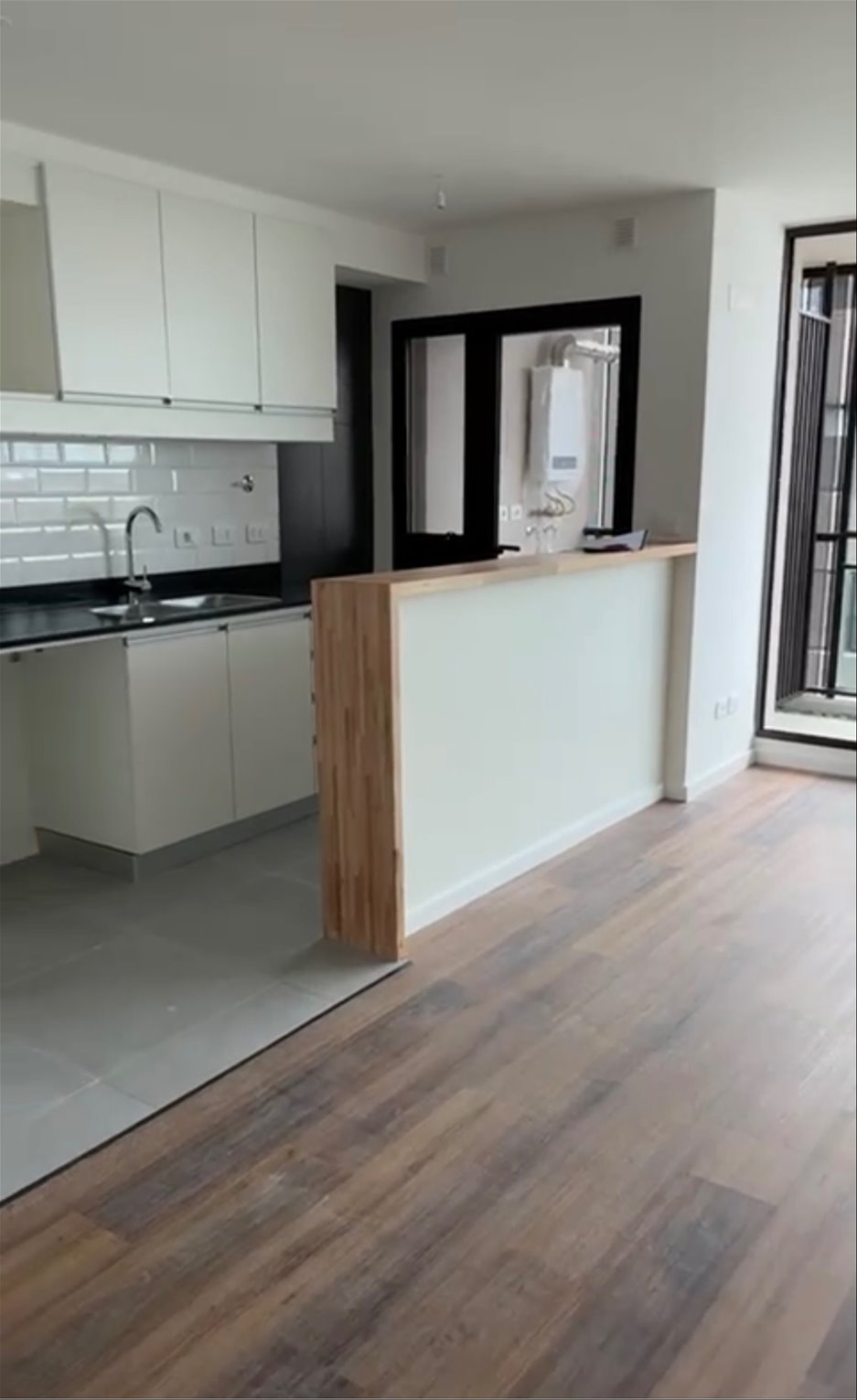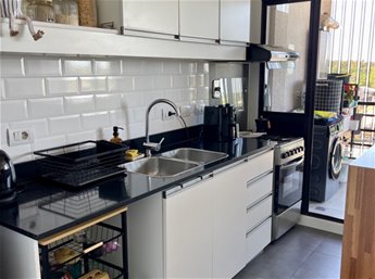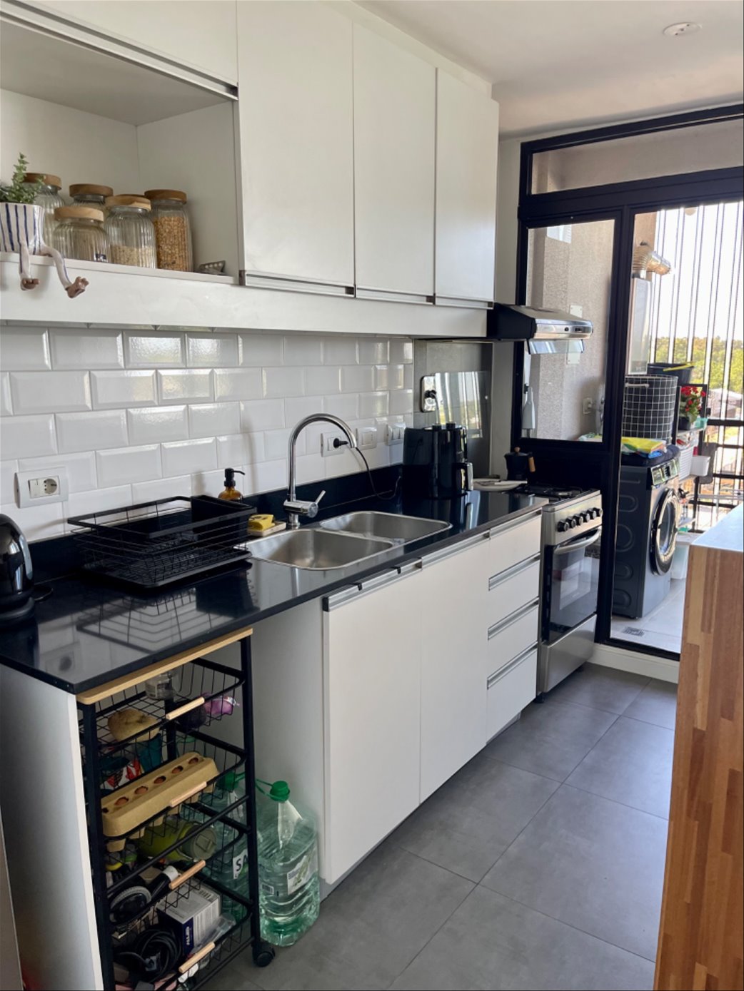 Cocina integrada con muebles sobre y bajo mesada.