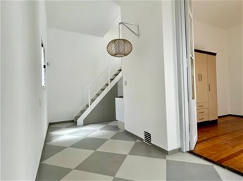 Planta Baja Entrada a hall de distribución ,living comedor espectacular al frente , Dos dormitorios grandes con mucho sol amplios ventanales placares y piso de lapacho. Patio muy cómodo Cocina con estar integrado y baño completo . Planta Alta Tercer dormitorio mas pequeño y salida a la azotea transitable.