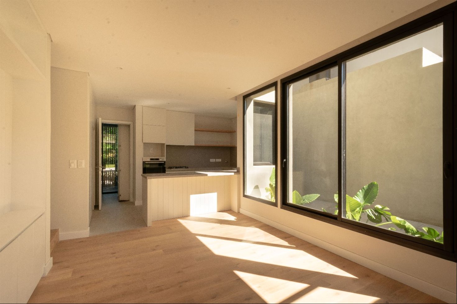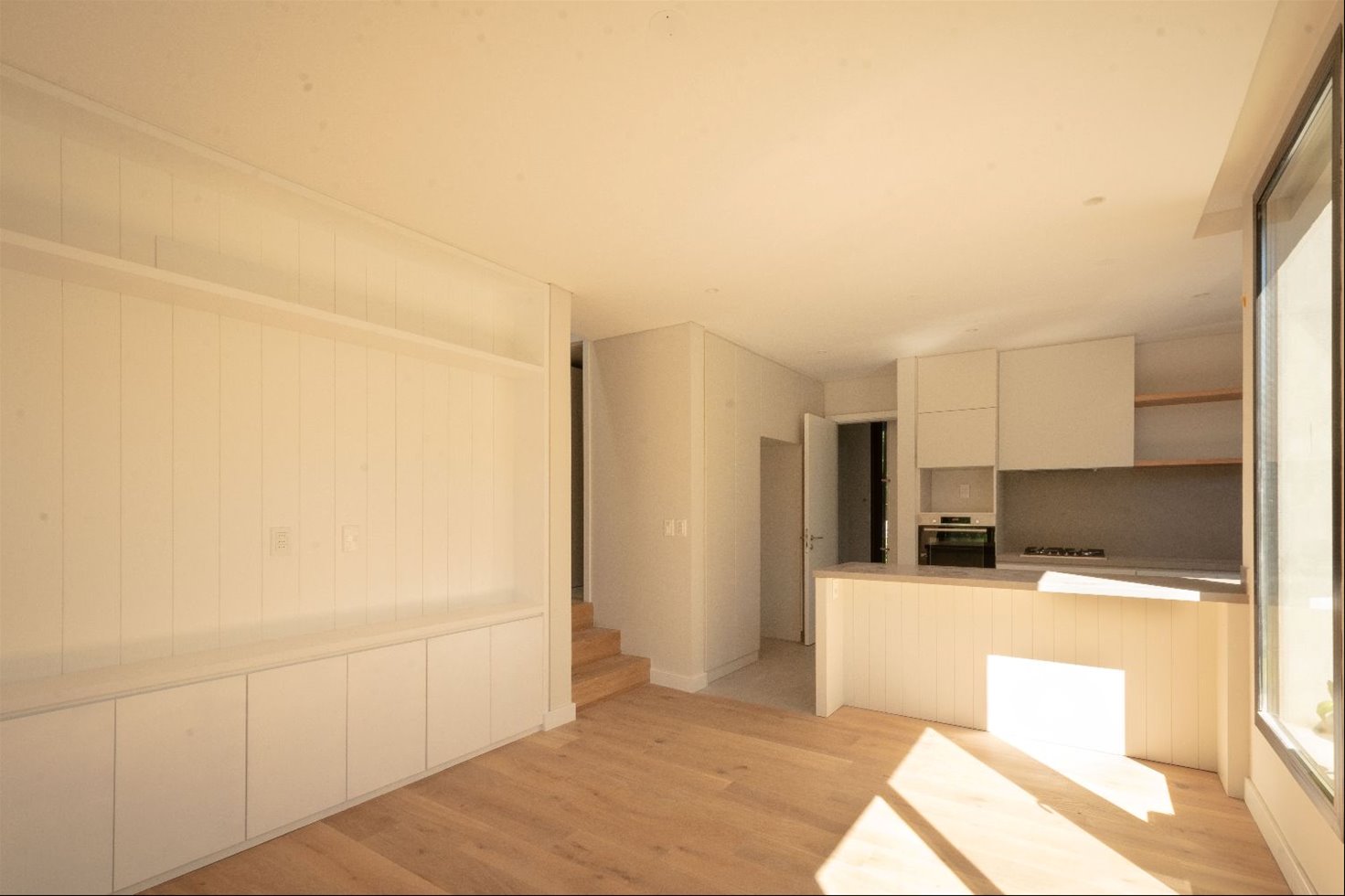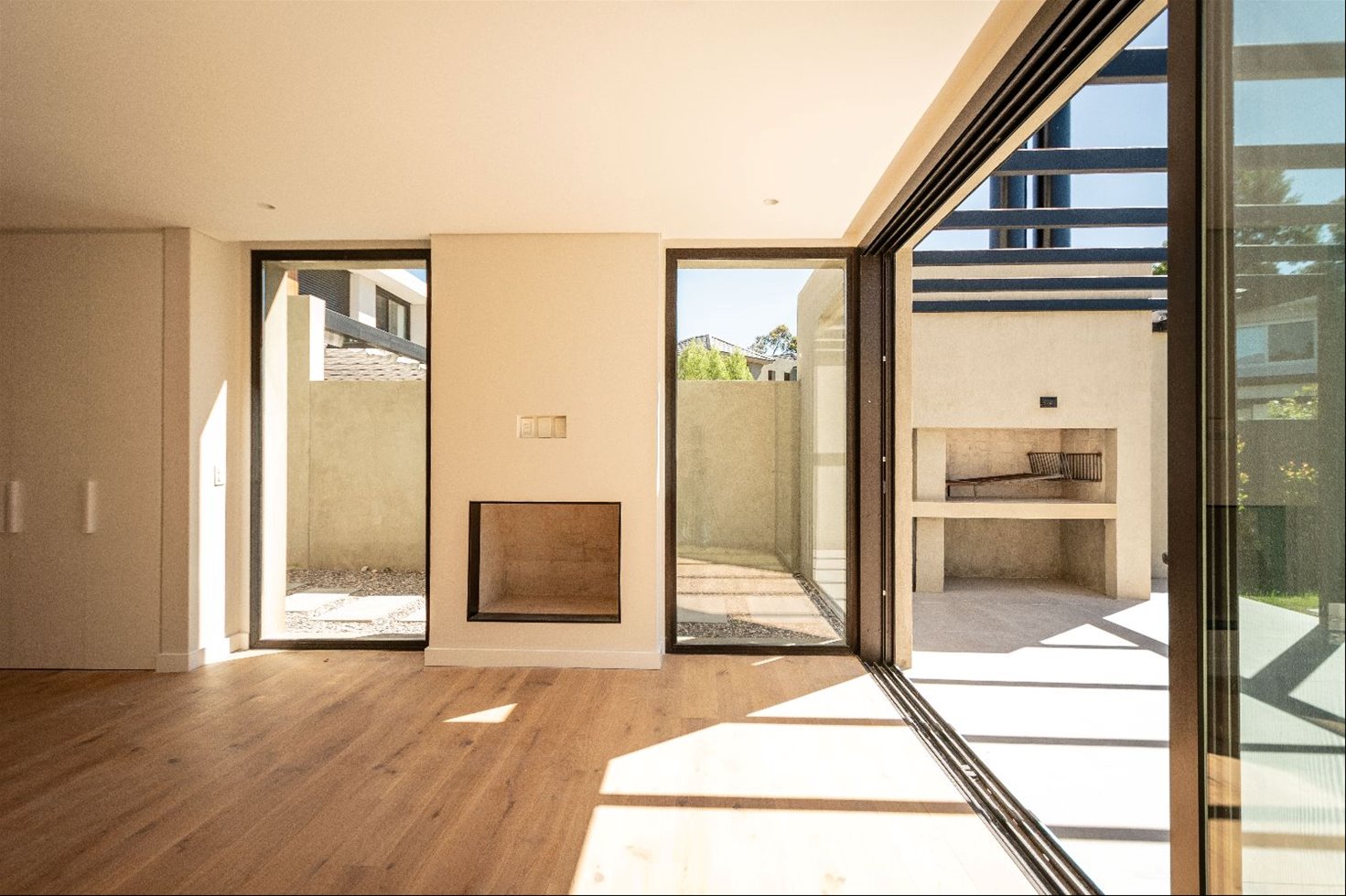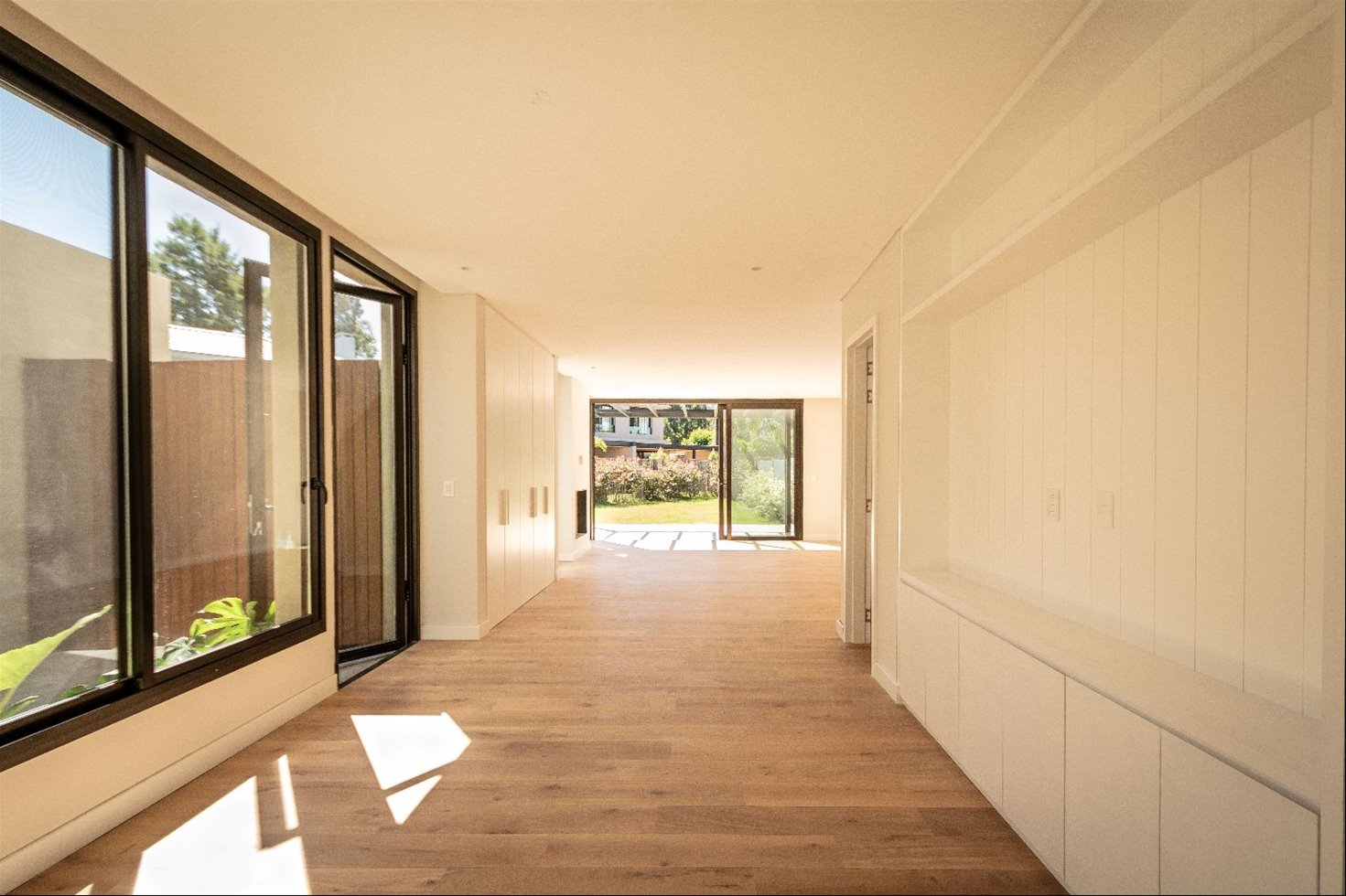 Terminaciones: aberturas de aluminio con DVH, cortinas motorizadas en dormitorios, pisos de ingeniería en áreas principales, porcelanato en cocina y baños, losa radiante a gas, caldera a gas para calefacción y agua caliente, previsión para aire acondicionado, mobiliario laqueado en cocina y baños.