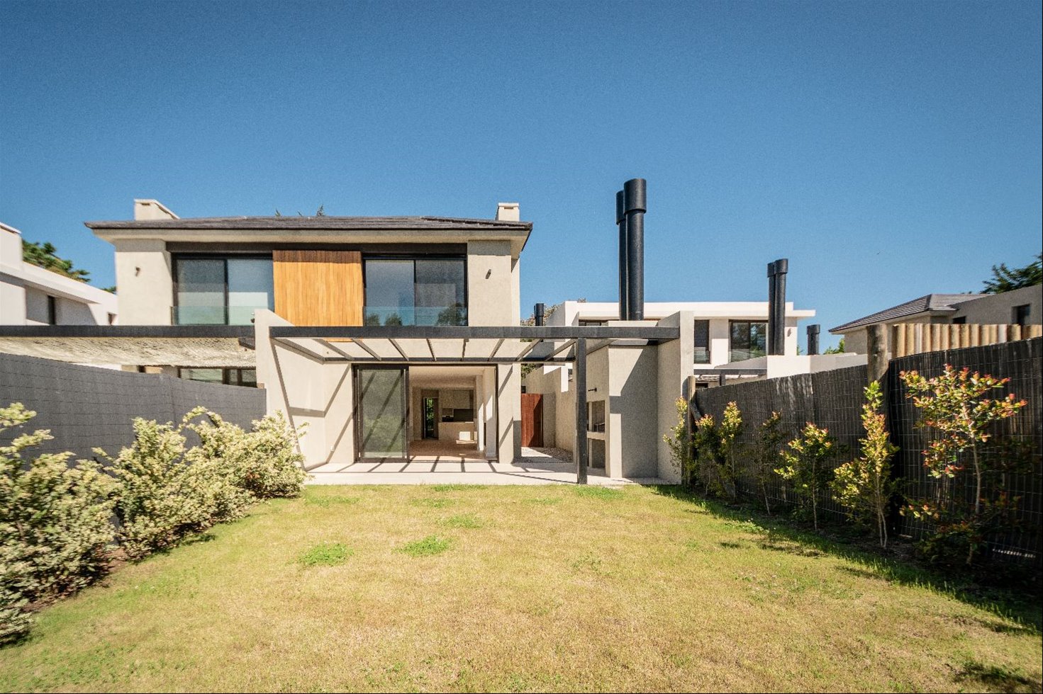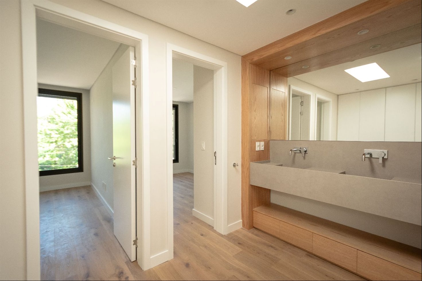 En planta alta se ubica el dormitorio principal en suite con vestidor, dos dormitorios adicionales, un baño completo y un hall que puede utilizarse como escritorio. También cuenta con terrazas accesibles.