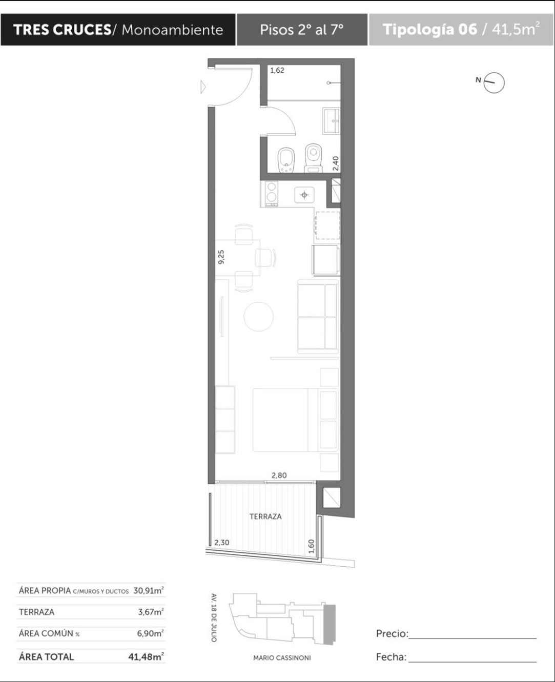 Apartamento Monoambiente a Estrenar! Se encuentra sobre calle Mario Cassinoni y Av. 18 de Julio.