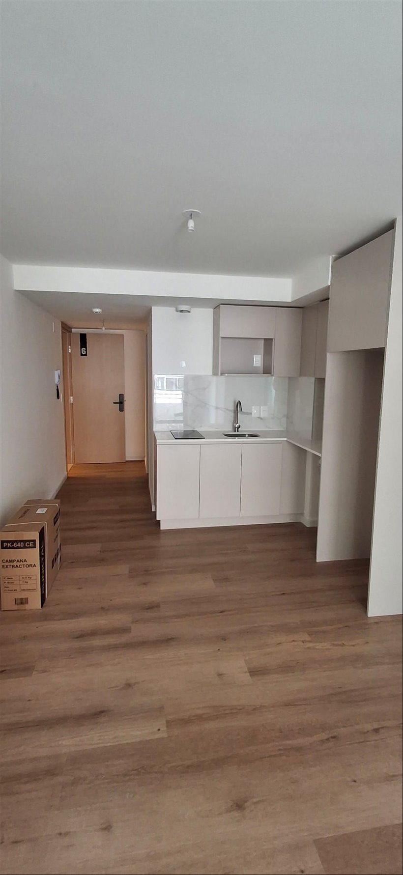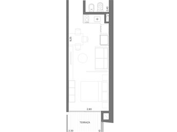 Muy comodo y luminoso. Cuenta con ropero empotrado. Cocina integrada con anafe y dos hornallas. Aire acondicionado y campana a instalar. Baño Completo. Balcón.