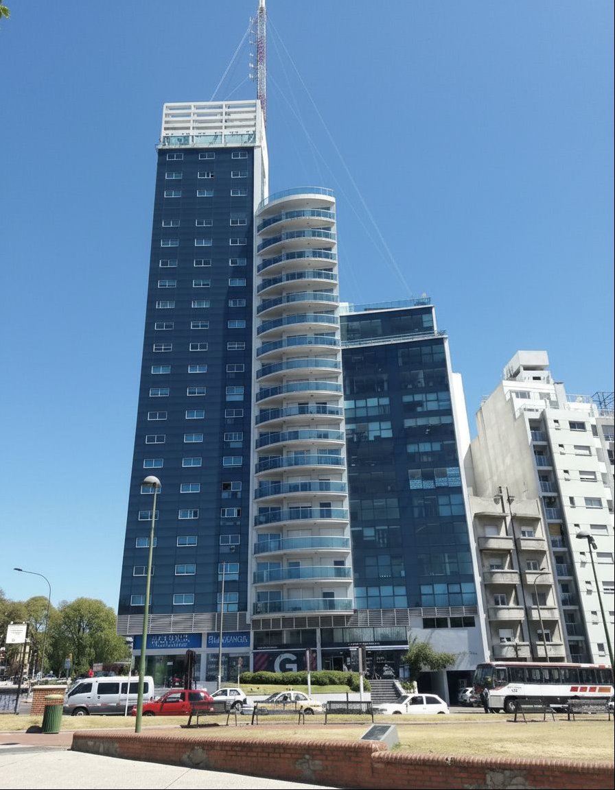 Se vende departamento de 2 consultorios separados por yeso, sala de estar con placard, cocina definida con muebles bajo mesada, baño (sin ducha), porque no es apto vivienda son todas oficinas comerciales. Piso elevado con excelente vista a toda la ciudad,orientación oeste con toda la puesta del sol a la vista, frente por frente a la plaza de la bandera, y Shopping XXX. En el último piso posee varias barbacoas para uso de todos los propietarios o inquilinos. La propiedad posee aires acondicionados frío/calor. Dado a su ubicación, tamaño, luz bajos gastos comunes, es una excelente inversión para rentar a profesionales varios.