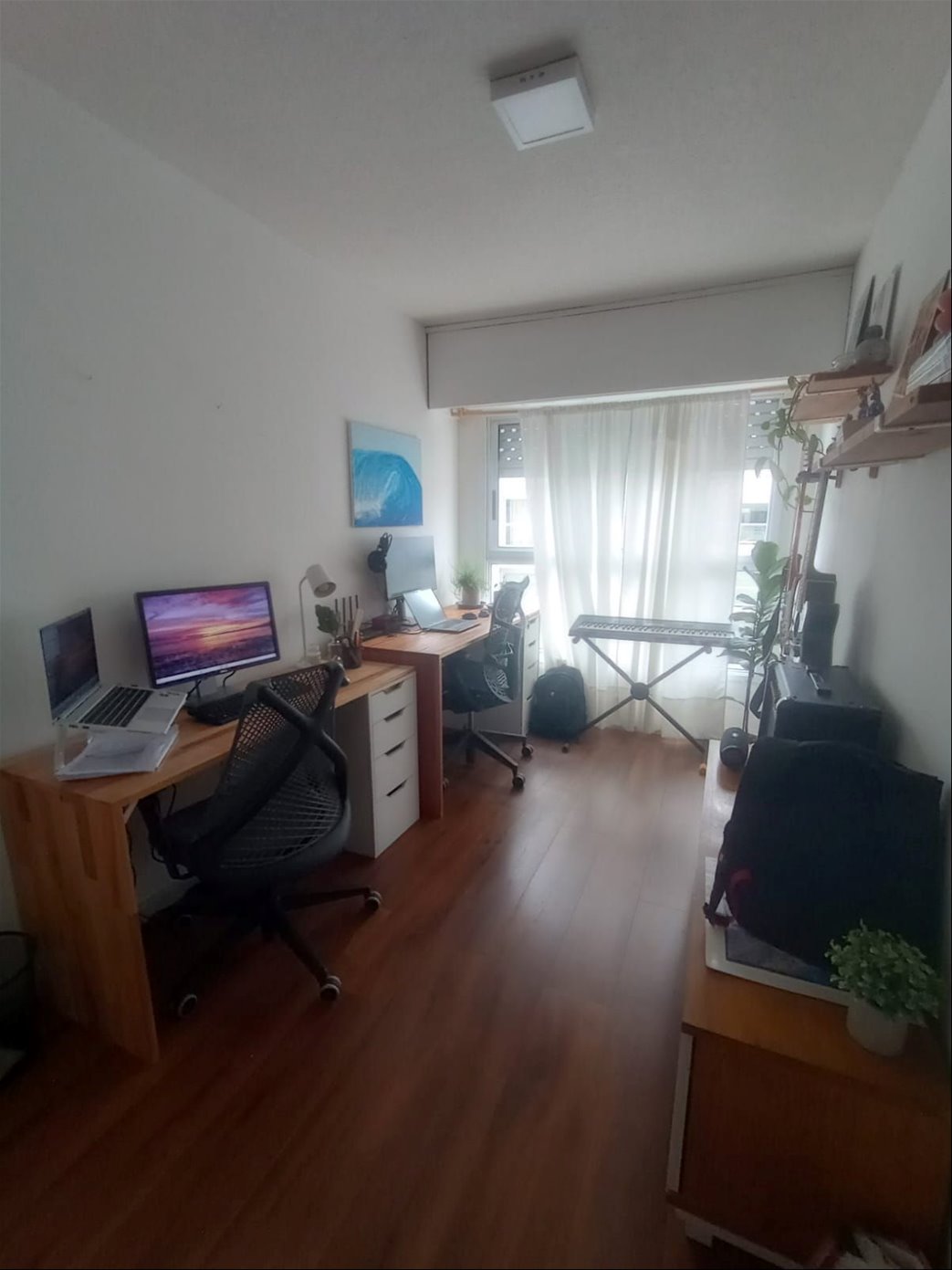 Apartamento moderno,en cuarto piso ,con terraza al frente. Muy bien ubicado, en la calle Francisco Muñoz, entre Av. Rivera y 26 de marzo. Zona tranquila, y próximo a avenidas. A pocas cuadras del Shopping de Montevideo y de la rambla de Pocitos. Amplio living comedor con terraza al frente, con vista despejada. Hermosa iluminación por la orientación Norte y por la altura en que se encuentra. En living comedor y dormitorios, tiene pisos flotantes en madera. En los baños, terrazas y cocina, pisos de porcelanato. El apartamento cuenta con amplias aberturas de aluminio anodizado blancas, en la terrazas cuenta con rejas de seguridad. En las ventanas de los dormitorios, cuenta con persianas de enrollar. Junto al living, se encuentra el primer baño completo. Que funciona cómo baño social y cómo baño para el segundo dormitorio. Luego se desarrolla la cocina, amplia, con oficce o posibilidad de comedor diario. Cocina con muebles bajomesada y aéreos. Mesada de granito negro absoluto. Desde la cocina se accede a la terraza lavadero.