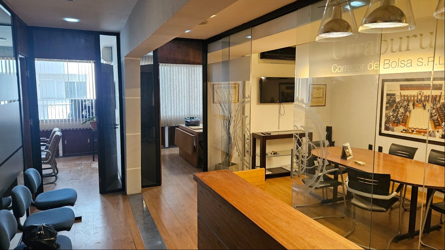 Distribución y comodidades: Recepción con cómodo espacio de espera Amplio despacho privado con baño 4 oficinas grandes (2 al frente y 2 al contrafrente) Oficina adicional de menor tamaño Cocina definida Espacio individual de comedor Baños funcionales e impecables