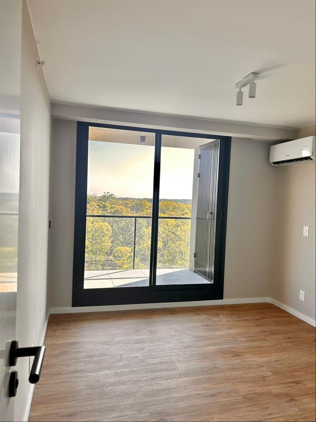 Apartamento en piso alto, muy luminoso, con vista al Parque Roosevelt con amplia terraza. Living comedor con cocina integrada, equipada con muebles aéreos y bajo mesada, horno empotrado y anafe. Cuenta con 1 dormitorio con placard y salida a la terraza, 1 baño completo, aire acondicionado en living y dormitorio, losa radiante a gas, y cochera fija para un auto.