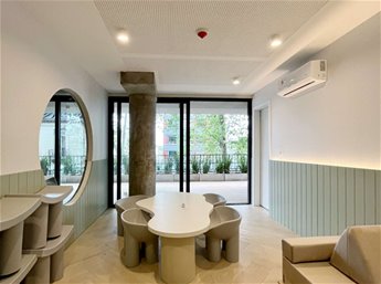 Amenities: barbacoa/SUM, gimnasio, co-work, playroom, jardín, laundry, lobby café y seguridad.