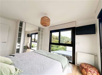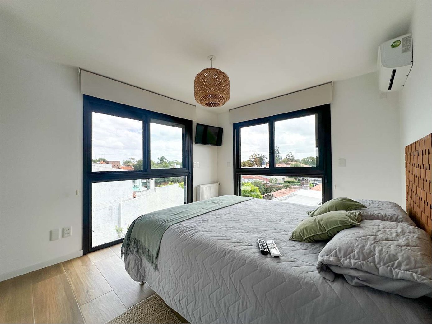 En el sector íntimo se desarrollan dos dormitorios con placares y un baño completo. Las terminaciones son de categoría: pisos de porcelanato símil madera, aberturas de aluminio con DVH, mosquiteros en todas las ventanas, rollers con filtro UV y cortina de enrollar eléctrica en el living.