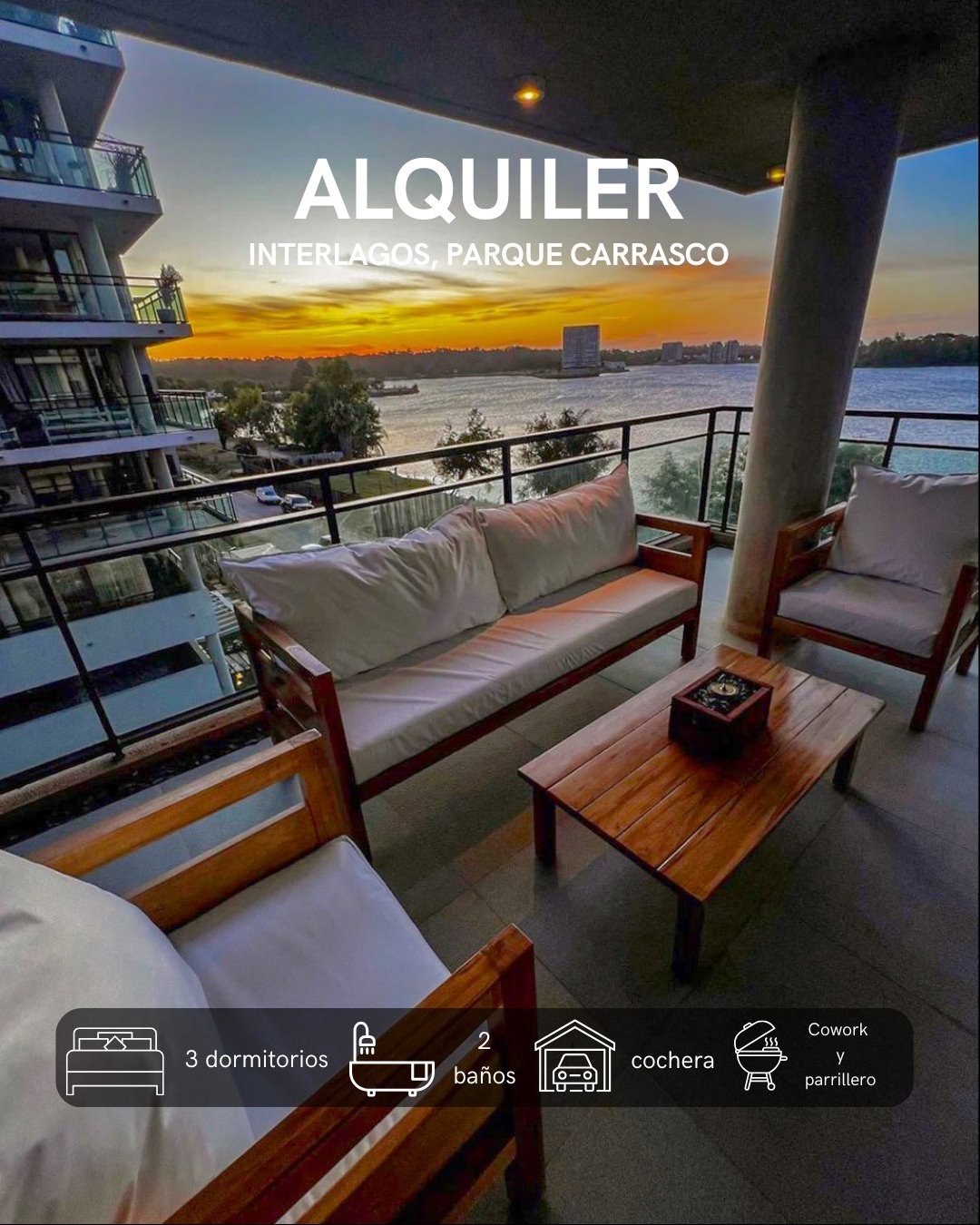 ALQUILER APARTAMENTO INTERLAGOS 3 Dormitorios con balcón con espectacular vista al Lago Calcagno (conocido como Lago de la Botavara).