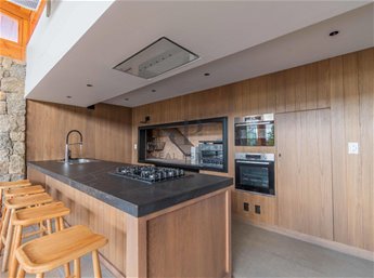 Interior: Living comedor con estufa a leña. Cocina semi-integrada, equipada con campana, horno y anafe. Baño social. Playroom o escritorio.