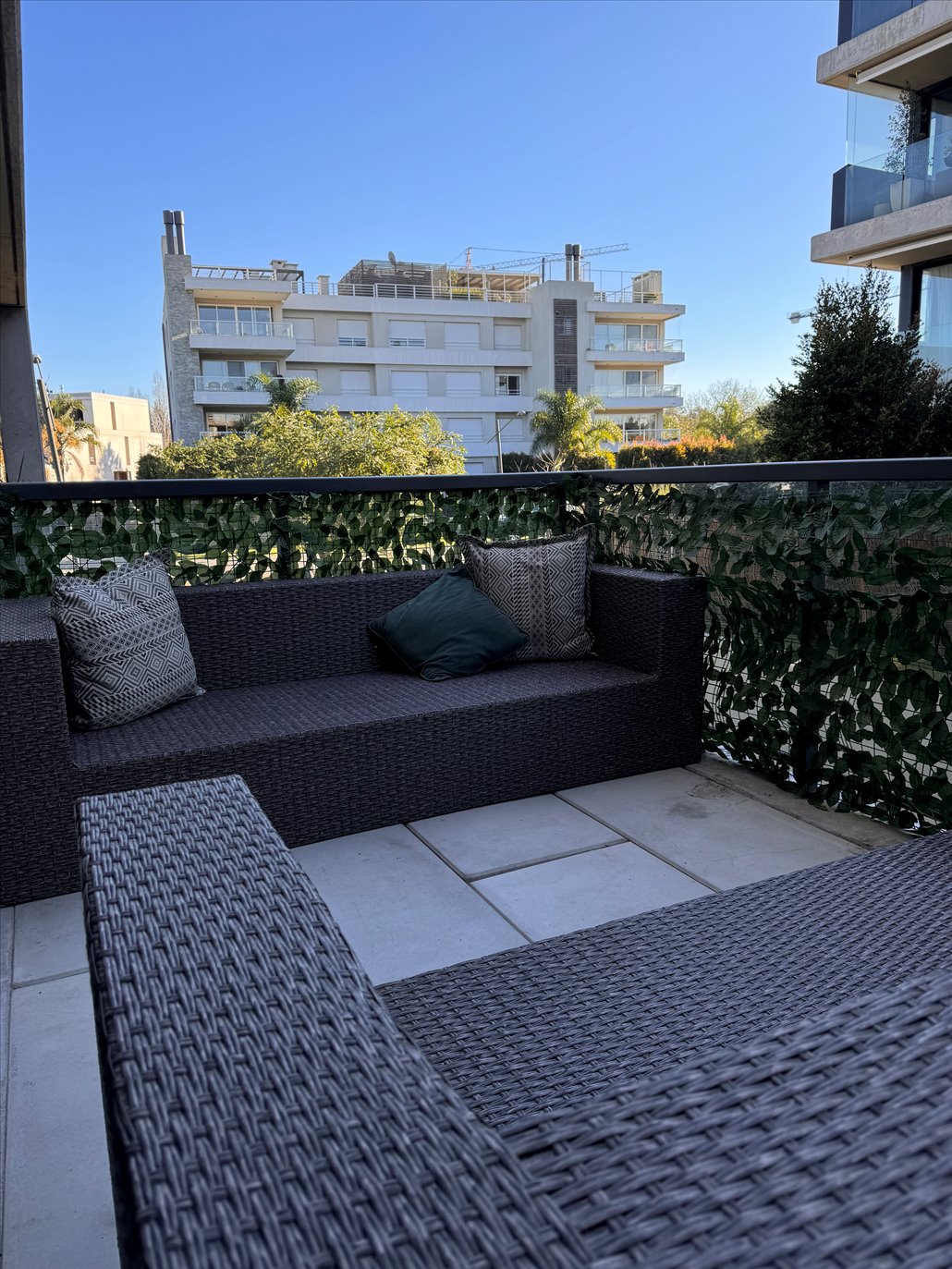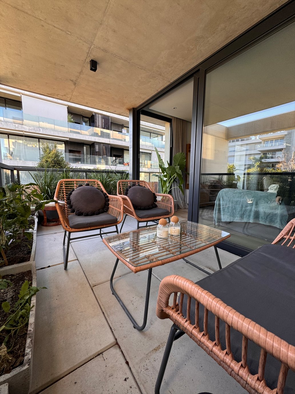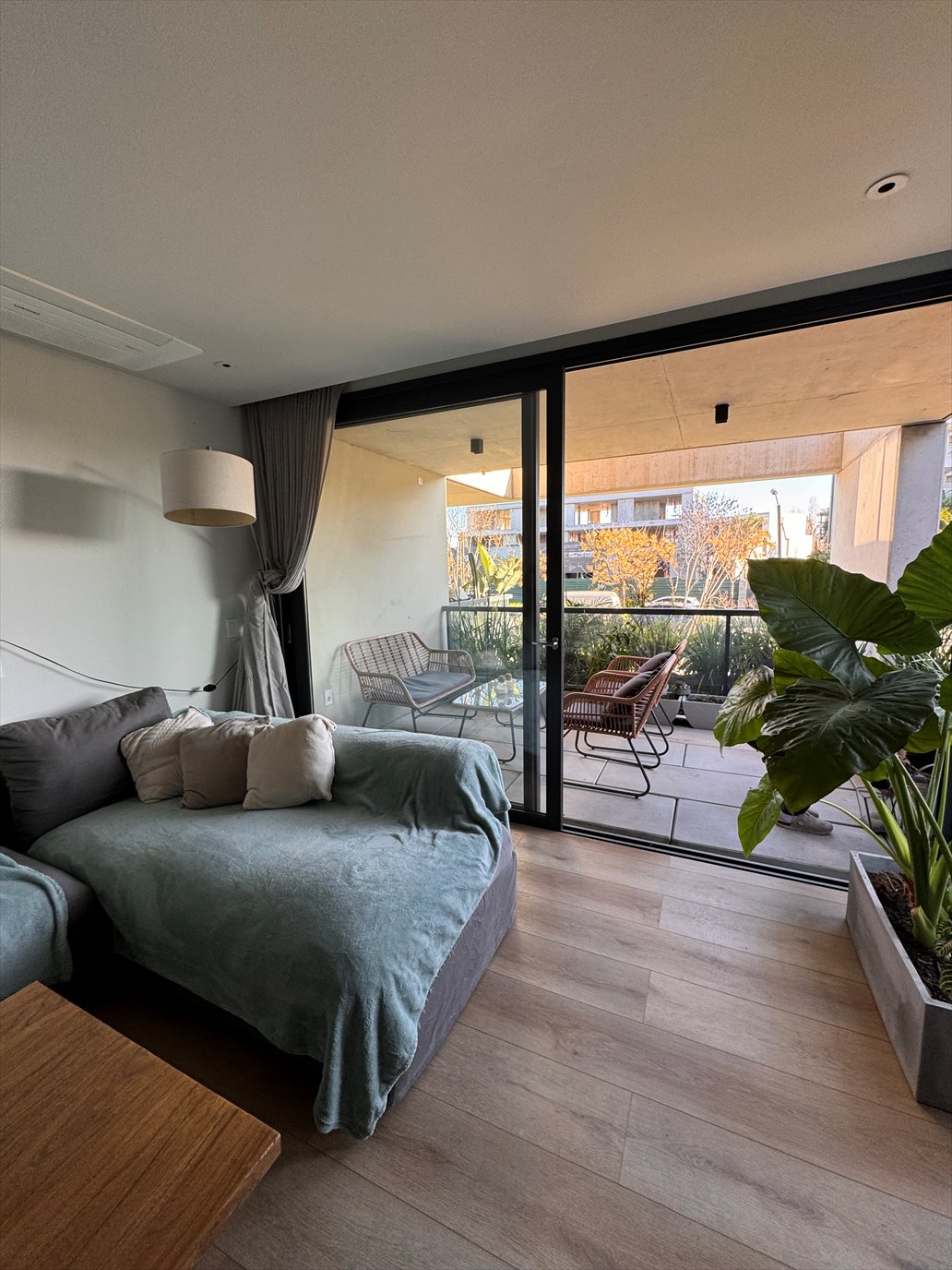 Al entrar nos encontramos con living comedor con cocina integrada y una terraza al frente mas otra terraza en el lateral de buen metraje ambas. Cocina moderna y con mucho espacio de guardado Horno y microonda empotrados, anafe vitrocerámica y campana instalados Lavadero con mesada y pileta de lavado Grandes ventanales de piso a techo que permiten entrada de abundante luz solar