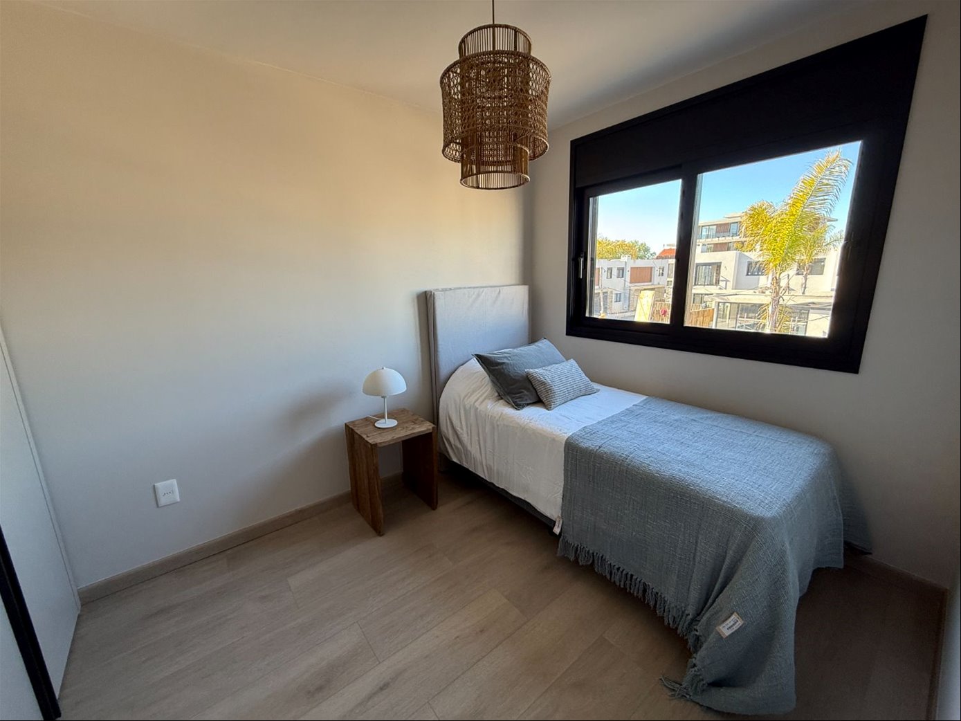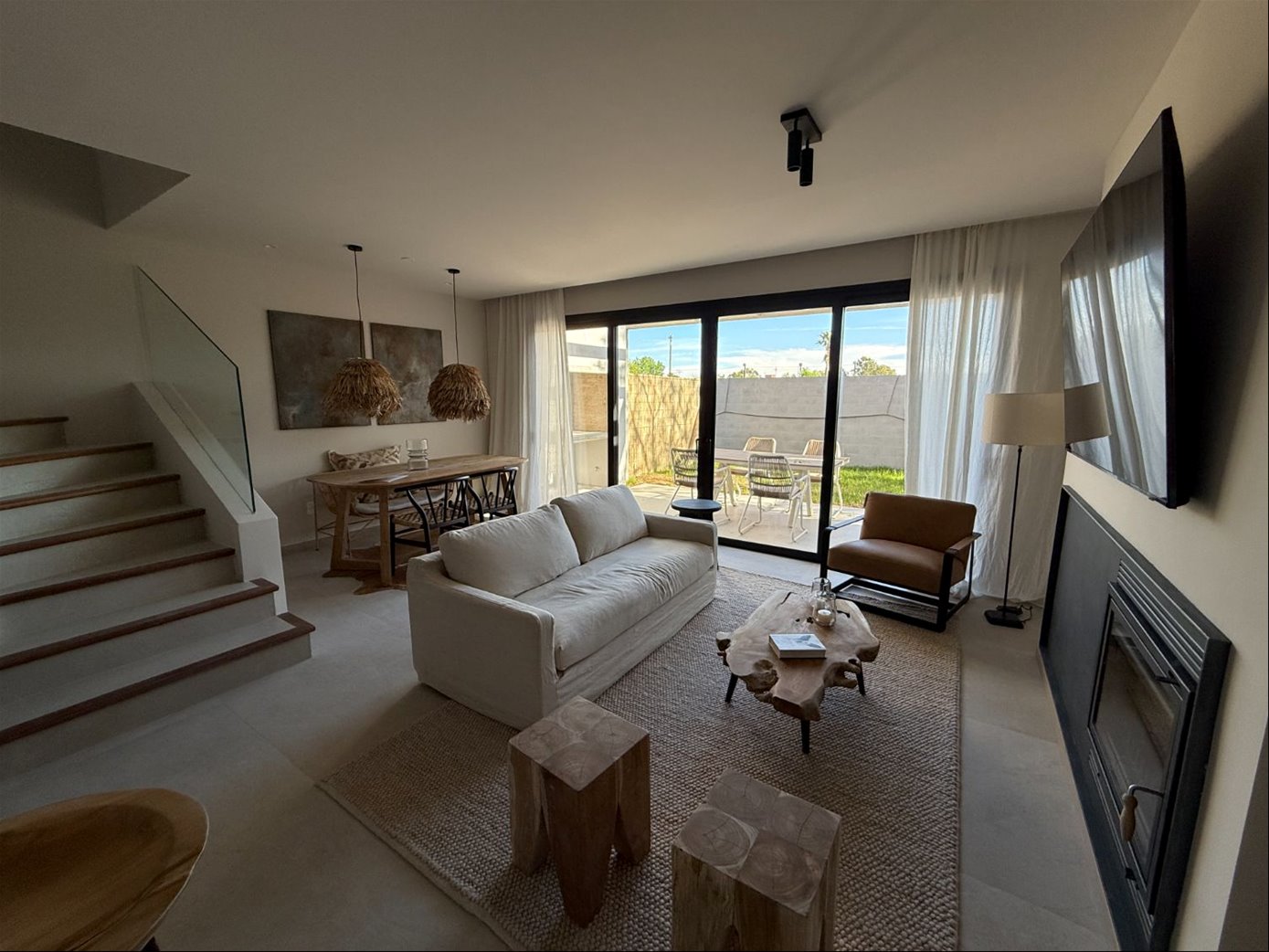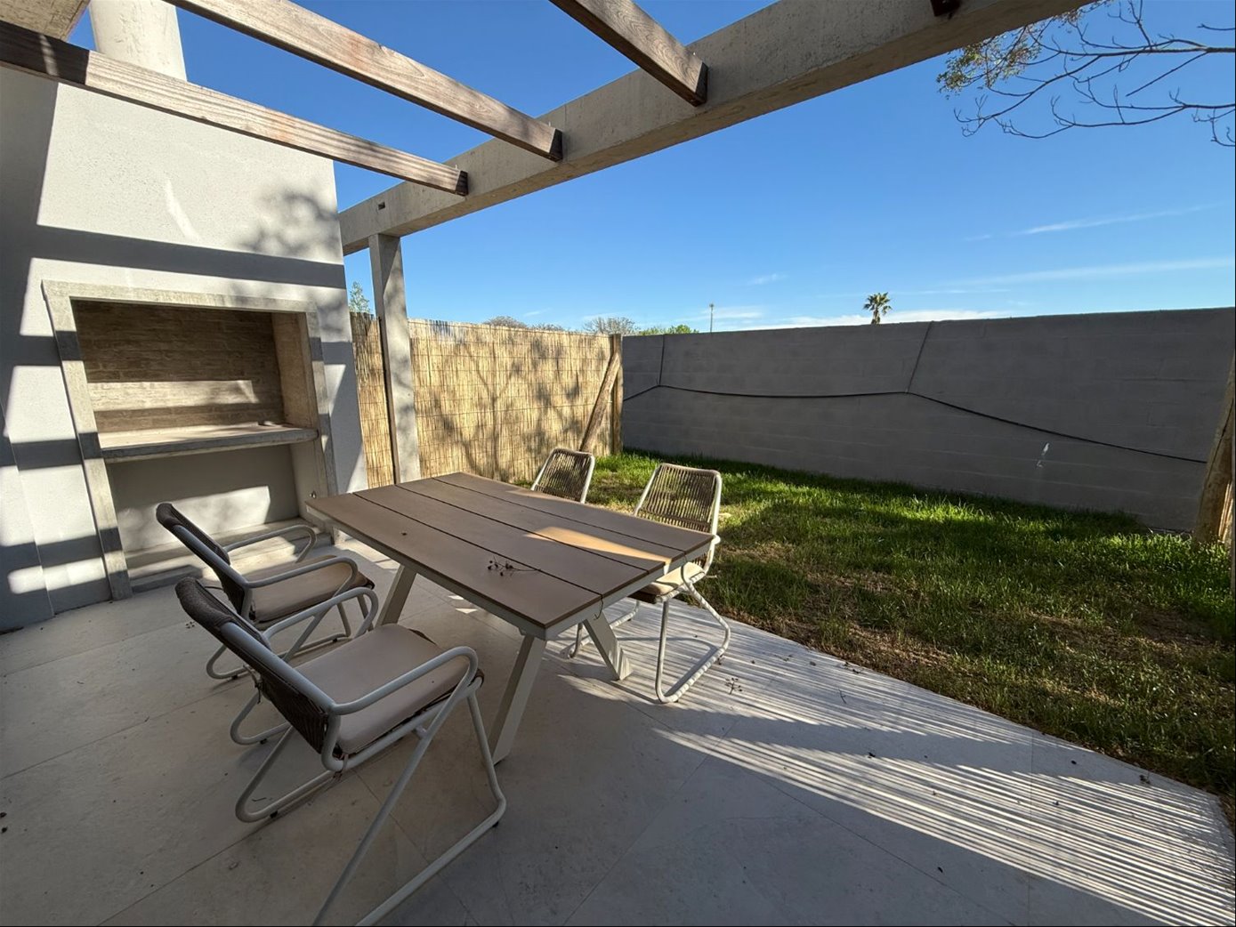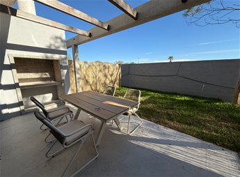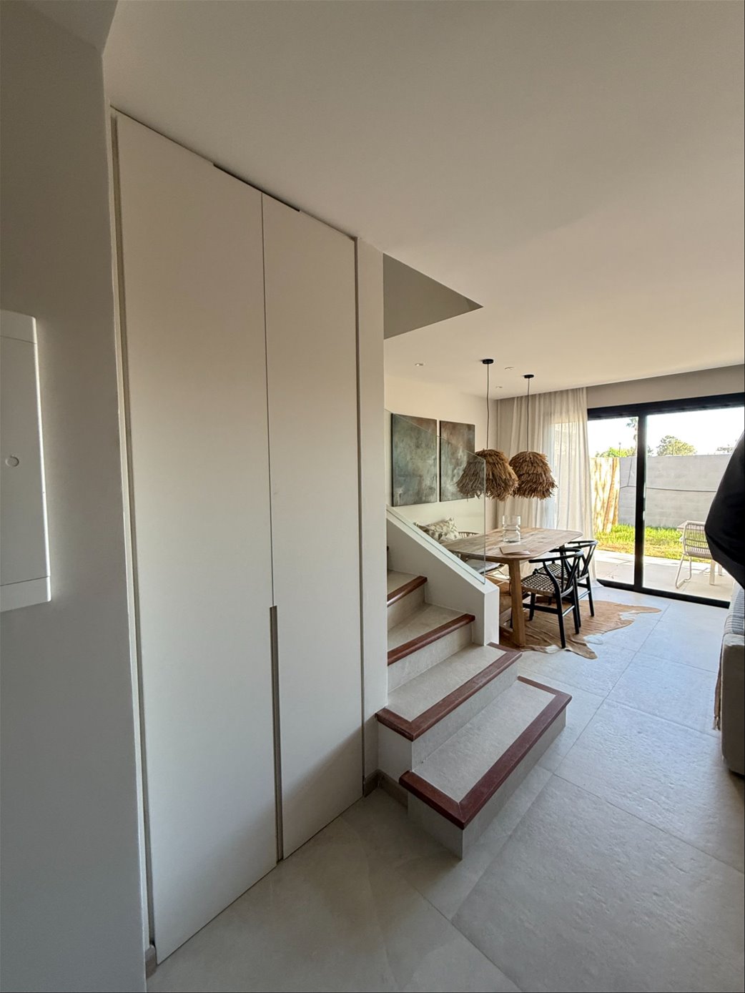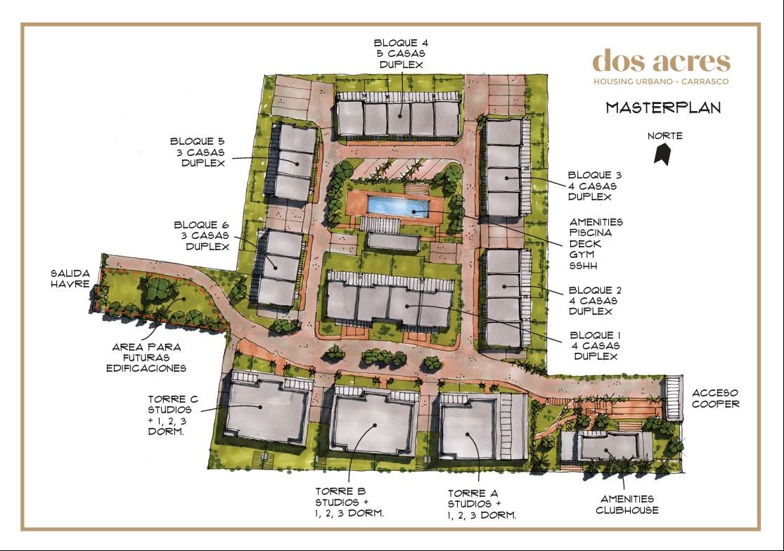Hermosa casa a estrenar en el Housing Dos Acres. Un proyecto ubicado en Carrasco Norte, en Cooper y Máximo Tajes. En un terreno de 9.000m2 se desarrolla este hermoso housing de casas y apartamentos, con increíbles aménities, un lugar precioso para vivir, en un entorno seguro y de mucho crecimiento. Esta casa se desarrolla en dos plantas. En planta baja nos encontramos con un amplio living comedor con estufa de alto rendimiento y salida a un jardín de 56m2 con parrillero pergolado, ideal para disfrutar en familia. La cocina es integrada con barra desayunadora. En esta planta hay un toilette y un amplio espacio de guardado bajo la escalera. En planta alta nos encontramos con un cómodo hall de distribución y tres dormitorios amplios con palcares empotrados, el principal con salida a balcón. Se destacan las modernas y elegantes terminaciones de muy buena calidad. La casa además se entrega con heladera, lavavajillas, horno, anafe, campana, aires acondicionados, caldereta a gas para agua caliente y calefacción por losa. Tiene cochera para dos autos. Este housing del Estudio JDVA es realmente único y de primer nivel, cuenta con variados amenities como: Club house, piscina, playroom para niños, barbacoas con parrilleros equipados, gimnasio, zona de esparcimiento, laundry, seguridad 24/7 y CCTV, videoporteria, handyman. Los gastos comunes estimados son de $10.000 que incluyen estos increibles amenities y además el servicio de jardineria y paisajismo. Consultanos para agendar una visita!! Contrato mínimo de 2 años con garantía de aseguradoras o consultar. Acepta mascotas (consultar) *Las fotos corresponden al showroom