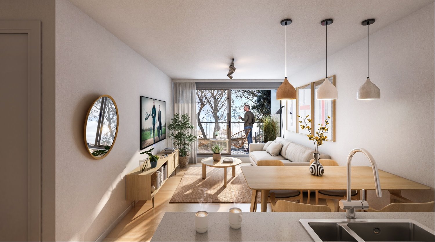 Apartamento en venta en proyecto en construcción ubicado en Malvin Montevideo Uruguay. Esta vivienda cuenta con 78 m² de área total y 75 m² edificados, ofreciendo un espacio confortable para vivir. Consta de 2 dormitorios, uno de ellos en suite, y 2 baños en total. Su disposición es al contrafrente y tiene orientación este, lo que garantiza buena iluminación natural (sol a la mañana).