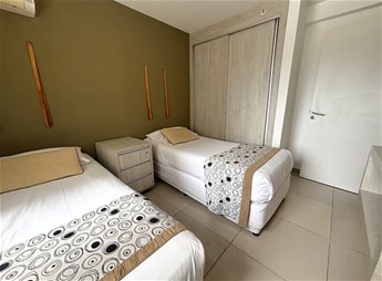 Dos dormitorios equipados con cama, placar, mesas de luz y escritorio, ideales para estudiar o trabajar desde casa.