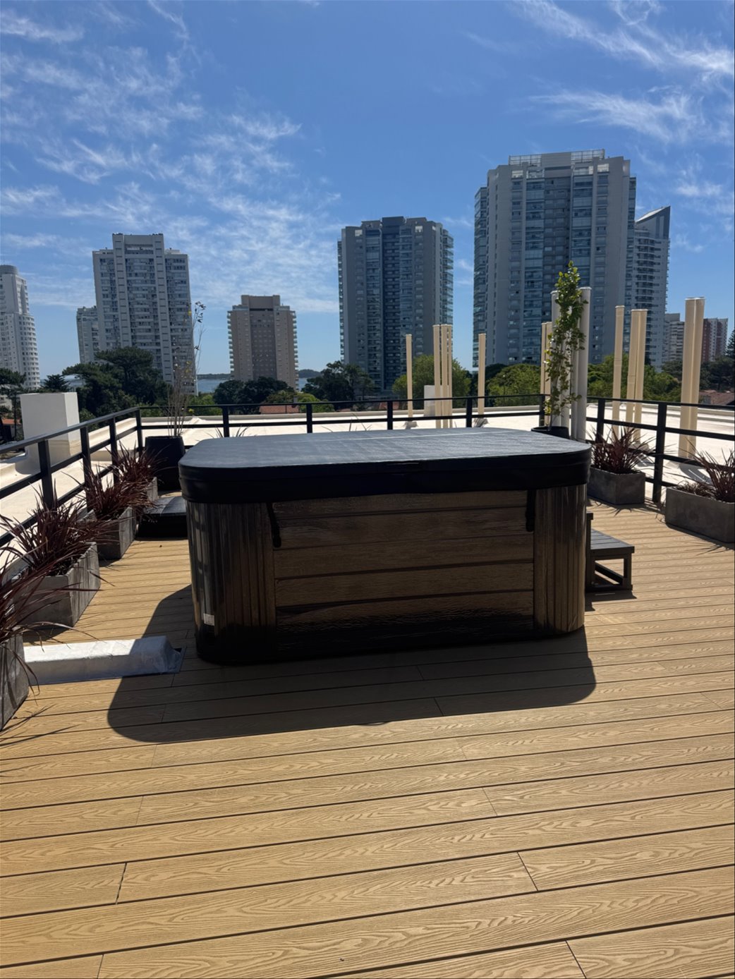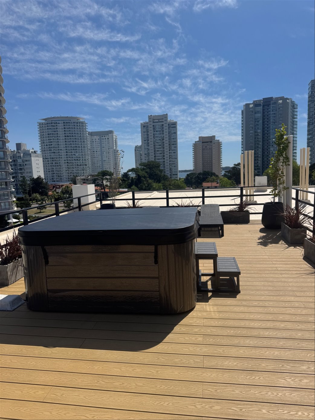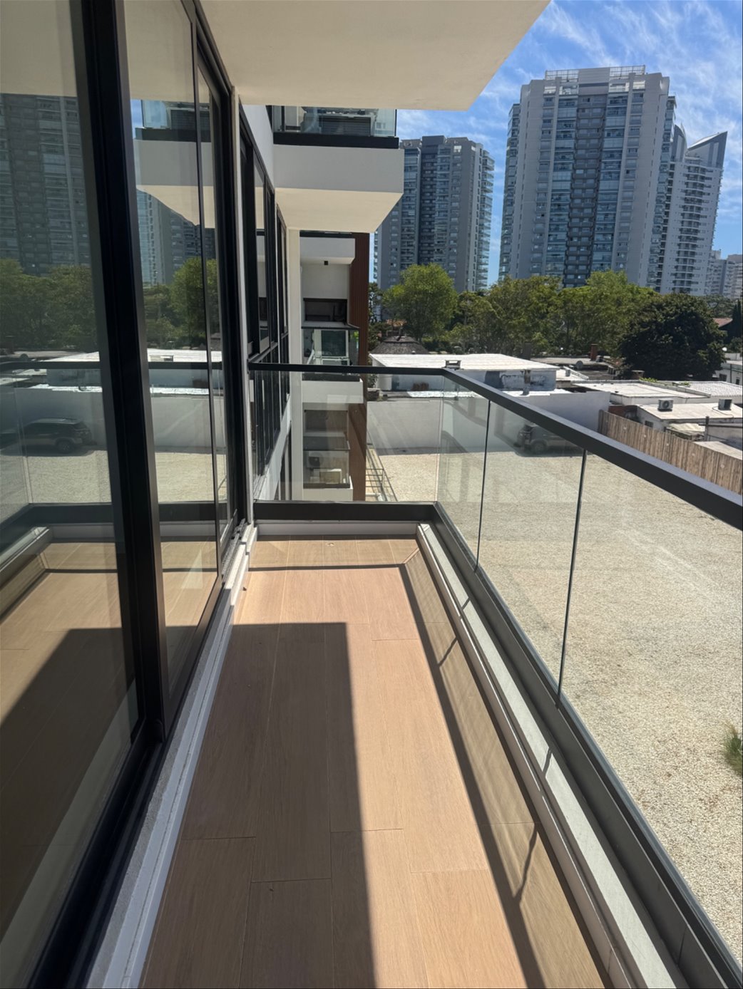 Apartamento a estrenar casi en península . Cuenta con amplio living con cocina integrada , salida desde e mismo a terraza en L (con Parrillero propio ). La cocina semi equipada con horno , anafe y campana extractora . Dos dormitorios , principal con baño en suite .