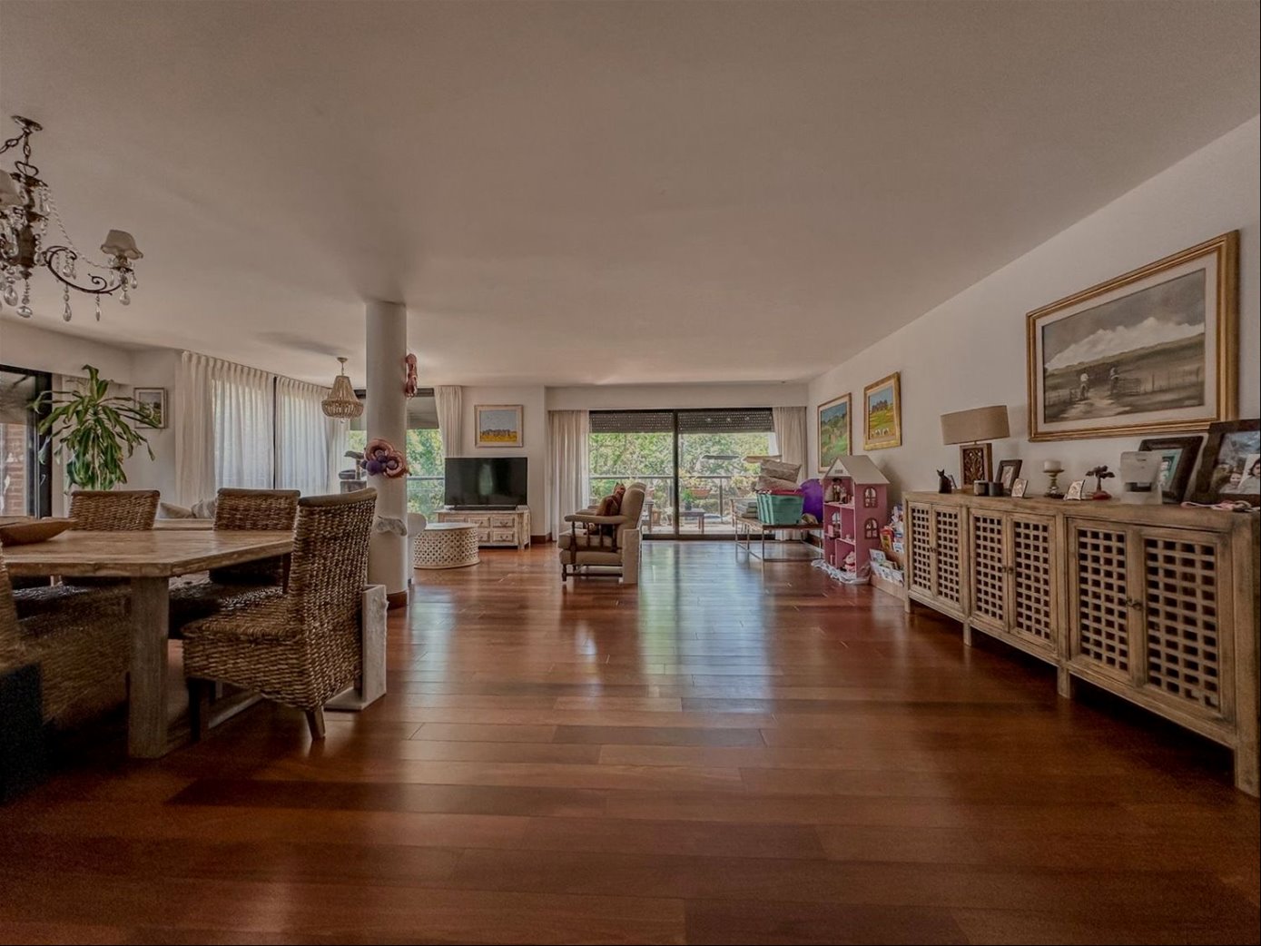 Se alquila hermoso apartamento en una de las zonas mas lindas de Carrasco. Ofrece 156 metros cuadrados de superficie edificada, mas terrazas y tiene el uso exclusivo de la azotea, donde se encuentra el lavadero y el parrillero. Cuenta con un amplio living comedor, cocina definida, tres dormitorios, uno de ellos en suite, y dos baños completos, además de un toilette. La cocina definida está equipada con horno, anafe y campana, todos los dormitorios con placares, pisos de lapacho en todo el apartamento, aberturas de vidrio doble, mosquiteros y persianas electricas en dormitorios y iving comedor. Caldereta a gas para el agua caliente. Losa electrica individual y aire acondicionado en cada ambiente. Muy luminoso gracias a su orientación norte y su disposición al frente. El apartamento se encuentra en excelente estado de conservación y posee terminaciones de muy buena calidad. La ubicación privilegiada en Carrasco lo sitúa a pocos minutos de importantes puntos de interés, su proximidad a servicios, comercios y vías de acceso principales facilita la movilidad. Esta propiedad incluye dos cómodos garages independientes, un valor agregado indispensable en la zona. El edificio cuenta con portero presencial de lunes a viernes de 8 a 17 horas, los fines de semana con vigilancia virtual, ademas del servicio de Kaibil que recorre la cuadra. No dude en llamarnos para agendar una visita.