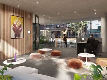Ofrece apartamentos de 1 y 2 dormitorios, distribuidos en tres bloques integrados por patios verdes, con un total de 81 unidades.