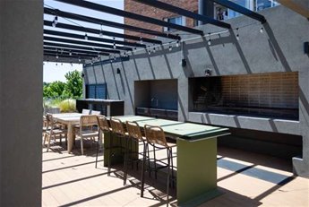 Situado en una torre con acceso digital, cuenta con gimnasio, dos barbacoas equipadas, huerta orgánica, y rincones de lectura y estudio.