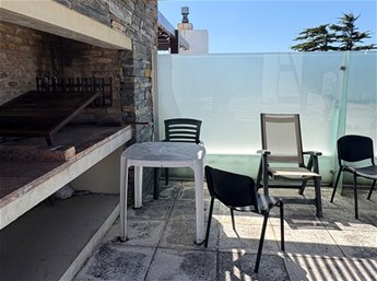 Nuevo en el mercado Venta de apartamento en Carrasco Sur. Buena zona, con excelente locomocion y cerca de todo. Buena planta, 90 mts mas terrazas. Living comedor al frente con estufa a leña, aire acondicionado y salida a terraza. Cocina con terraza lavadero. Dormitorio y baño de servicio. 2 dormitorios (principal en suite) y otro baño completo más. Ambos con placares y aire acondicionado. Garage cerrado para dos autos. El edificio cuenta piscina comun y barbacoa comun. Gastos comunes $ 23500 Contribucion anual $ 86000 Primaria Anual $ 22000