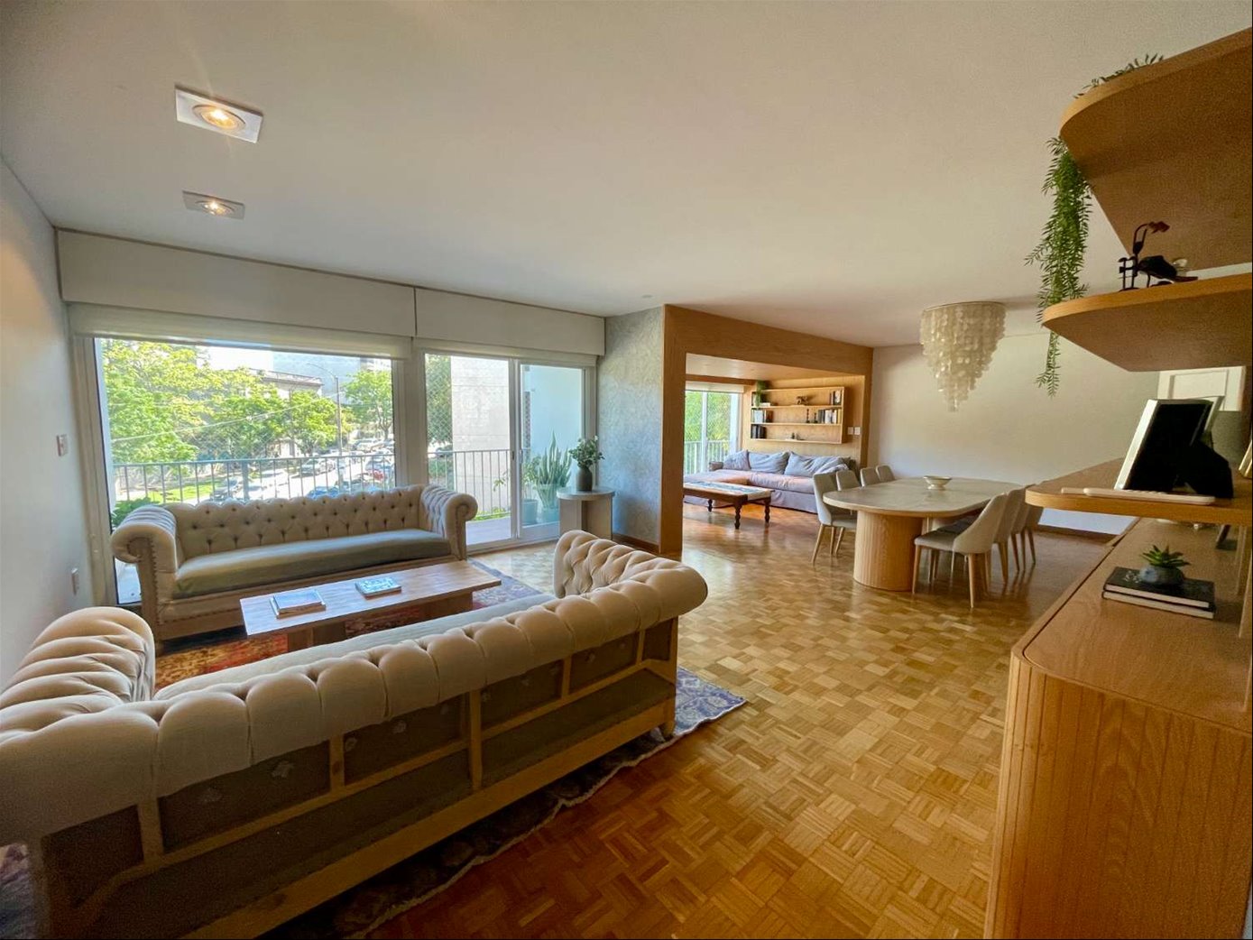 De revista! Excelente planta con amplios ambientes, muy buena circulación y sumamente luminosa, hecha completamente a nuevo en 2021. Se destaca la amplitud del living comedor apaisado, muy soleado y con acceso a la terraza al frente. Vista super despejada. Toilette de visitas. La cocina es muy luminosa y funcional con gran capacidad de guardado (mobiliario de Todeschini) y espacio de comedor o estar diario. Terraza lavadero amplia con entrada de servicio. En el área intima nos recibe un amplio hall de distribución. Al frente se ubica el dormitorio principal con su baño en suite, posee 2 placares empotrados y 2 amplios ventanales con preciosa vista. Los otros dos dormitorios se encuentran al contrafrente, ambos con placares y un baño completo con ducha. El reciclaje incluyó cambio de todas las aberturas del apartamento, sanitaria completa tanto en cañerías como en revestimientos y alhajamiento de la cocina y los tres baños, asi como tambien la eléctrica completa, todo con materiales de primera calidad. Pisos de parquet, aire acondicionado en living comedor y dormitorio en suite, cortinas de enrollar en los dormitorios y en el living (motorizadas en la suite y en el living) La calefacción es central por losa radiante. La unidad incluye un lugar de garage fijo con posibilidad de alquiler de otro garage dentro del edificio, y un box de 2m2. Vigilancia presencial las 24hs y portero con vivienda. Gastos comunes 21.000 pesos y suben 6.000 pesos durante los meses de invierno. Contribucion inmobiliaria 3 cuotas de 23.000 pesos, Impuesto de Primaria 3 cuotas de 6.500 pesos cada una. Contactanos para conocer este hermoso apartamento!