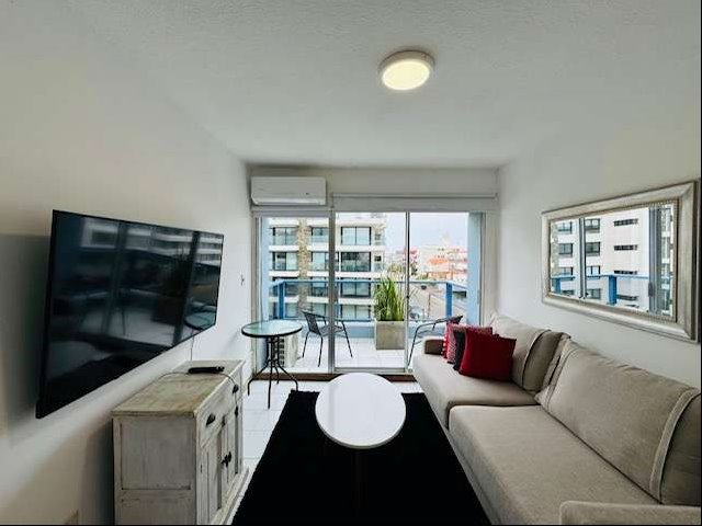 La unidad está situada en un tercer piso y su disposición es al frente, lo que permite disfrutar de una vista interesante desde su ubicación. Entre sus comodidades se destacan una cocina integrada, lo que favorece la amplitud y la funcionalidad de los espacios. La propiedad también incluye servicio de mucama y piscina. Para mayor confort, el apartamento posee placares, calefacción por aire acondicionado y se aceptan mascotas, lo que lo convierte en un hogar apto para toda la familia.