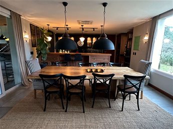 Sobre un gran terreno de 2300 m2 se desarrolla esta propiedad de construcción tradicional con 420 m2 edificados en 2 plantas. PB: Nos recibe un amplio hall de entrada con un amplio ventanal que nos brinda una transparencia hacia el fondo. El área social integrada pero con los espacios diferenciados: cocina moderna y funcional con una gran isla, comedor y un living con estufa de alto rendimiento que aporta calidez. 1 dormitorio con placard y 1 baño completo. Independiente de la casa encontramos dormitorio y baño de servicio, lavadero , despensa, cochera techada para 2 autos más espcio techado para más vehículos. Barbacoa cerrada con estufa leña y parrillero para el disfrute de todo el año integrada a la casa y a un divino jardín muy amplio. PA: 2 dormitorios (el principal con baño en suite y con un gran vestidor que puede oficiar como un 4to dormitorios en planta alta), 2 baños completos, hall de ditribucion muy luminoso y una gran terraza con vista.