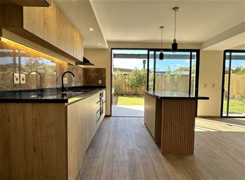Planta Baja: Living, comedro y cocina integrado orientado al norte, grandes ventanales que permiten el ingreso de luz natural. Cocina equipada con horno-anafe y extractor, lugar para lavaplatos. Todos los ambientes integrados a pergola con parrillero y salida a jardin. Baño social y deposito bajo escalera. Deposito con espacio para instalar lavarropas.